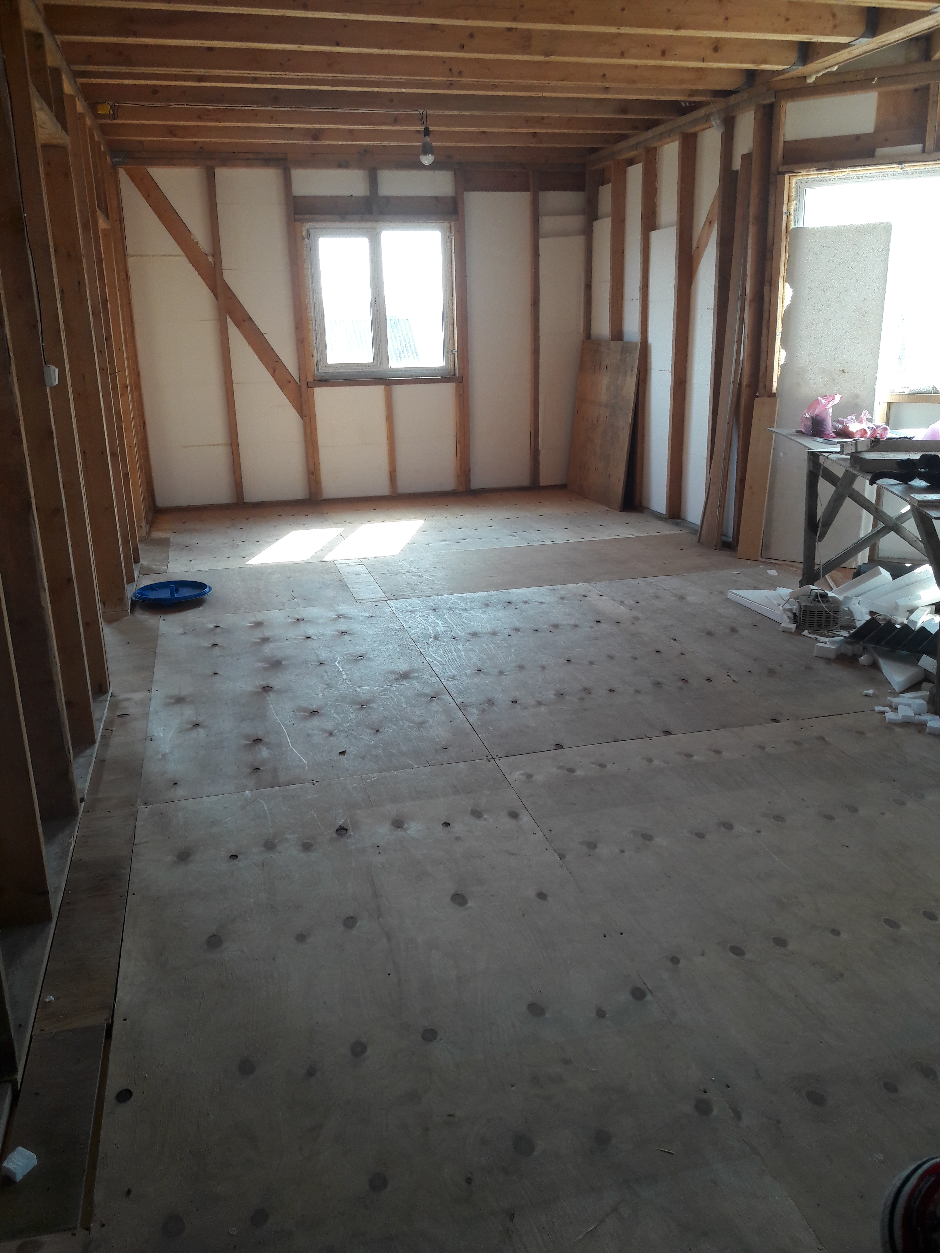 2. Я полностью выстелил пол первого этажа. Теперь у меня там все ровненько и без дырок :) Вона как :)