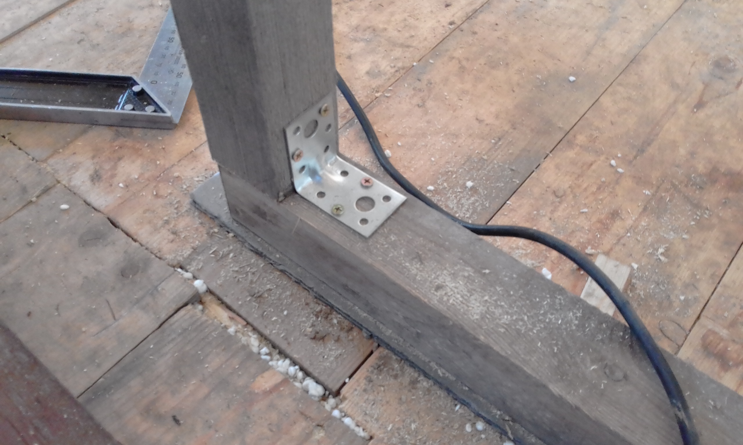Установил две стойки каркасной перегородки.