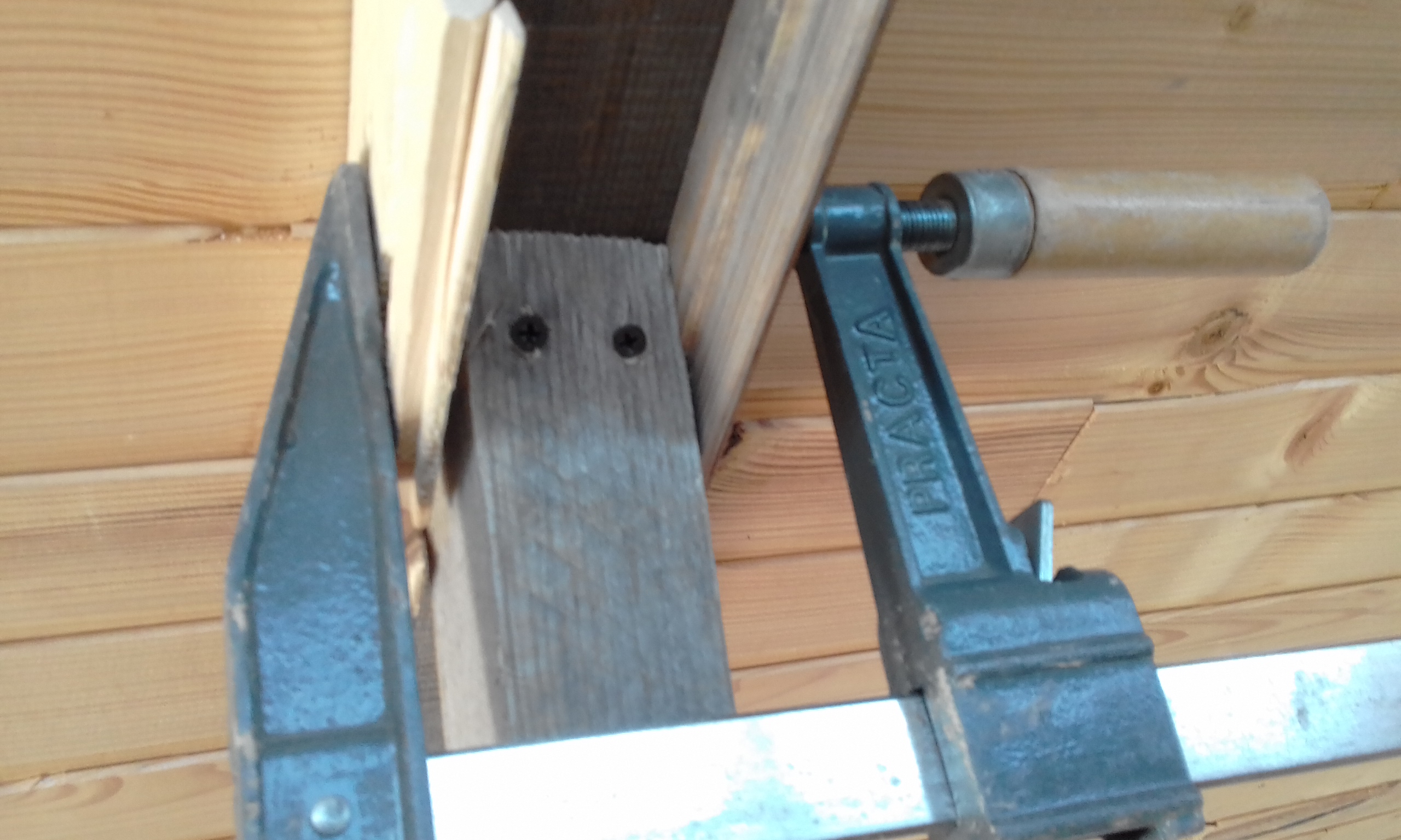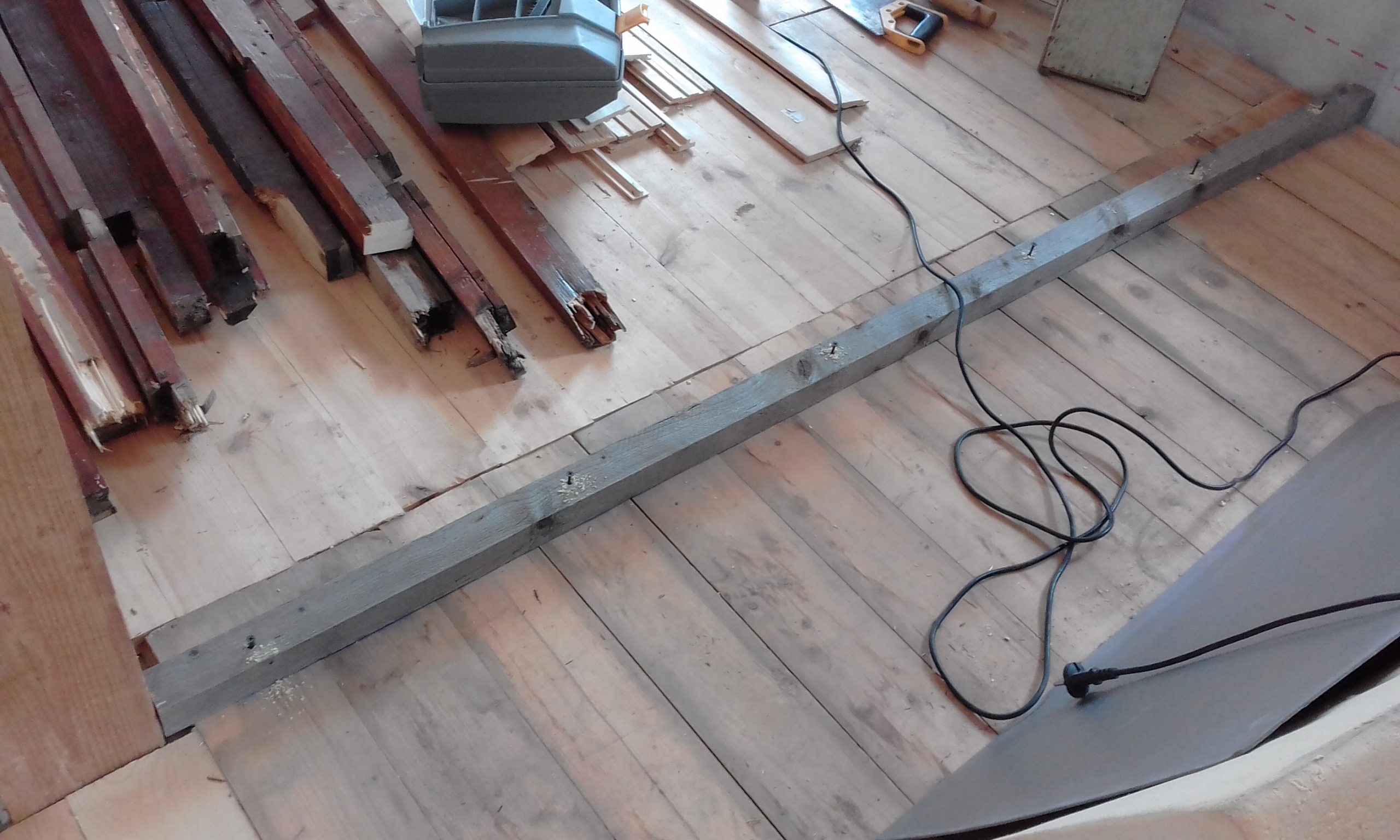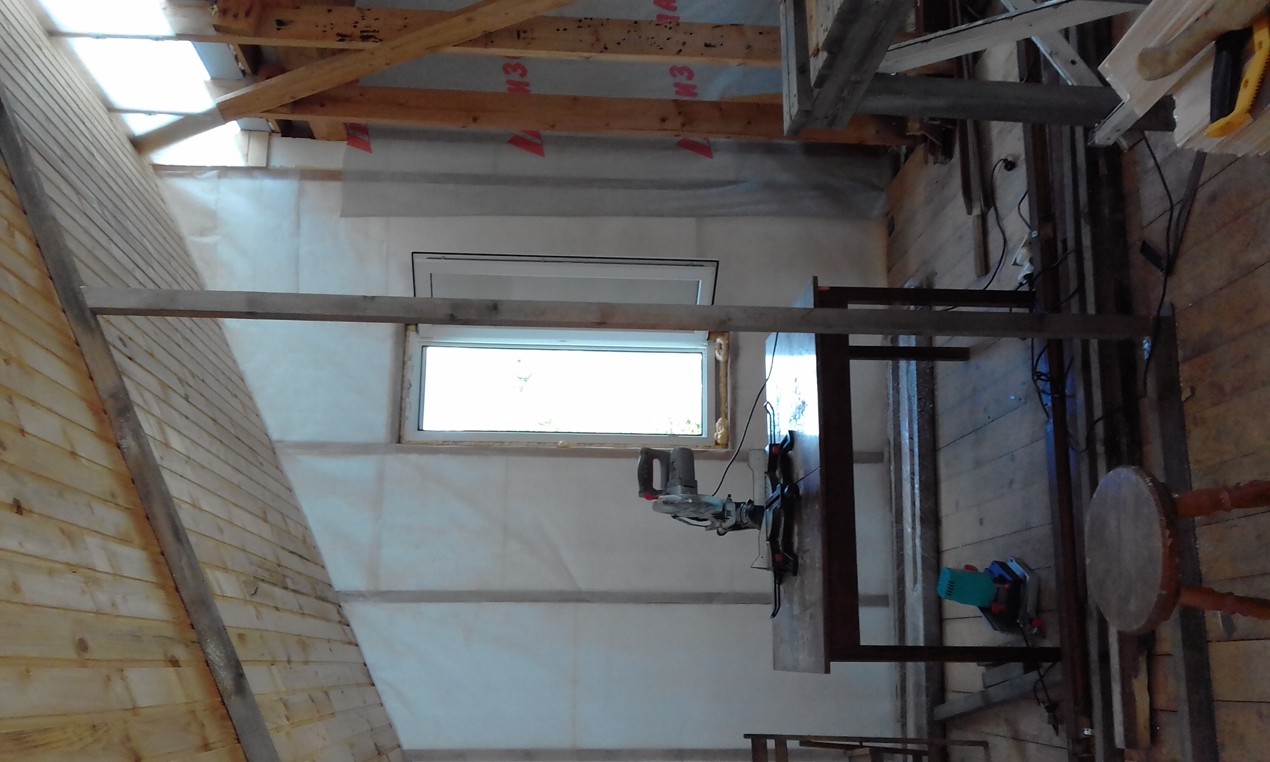 Выполнил каркас перегородки. Бруски, подобранные на помойке, хорошо смотрятся, даже жалко зашивать их.
