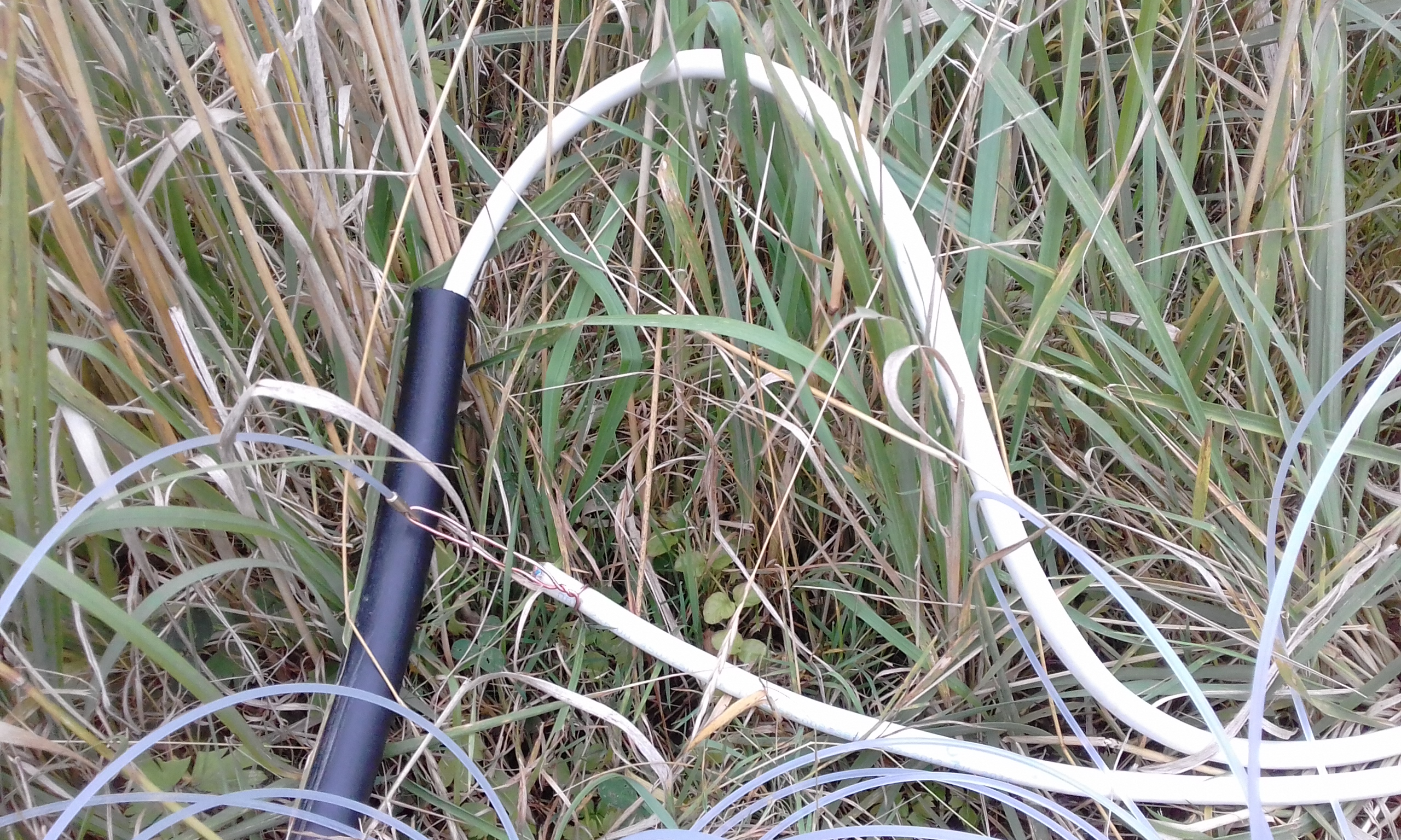 Проложил трассу от домового щитка до общего на столбе. Влагостойкий провод ПВС 2х6,0 (многожильный) затянул с помощью нейлоновой протяжки в трубу ПНД диаметром 25 мм (надо было брать 32 мм, протяжка в конце туго входила). Один конец завёл с свой щиток, второй частично в траншее, частично по забору подвёл к общему щитку. Теперь договорюсь с нашим председателем, чтобы он подключил мою линию к моему счётчику.