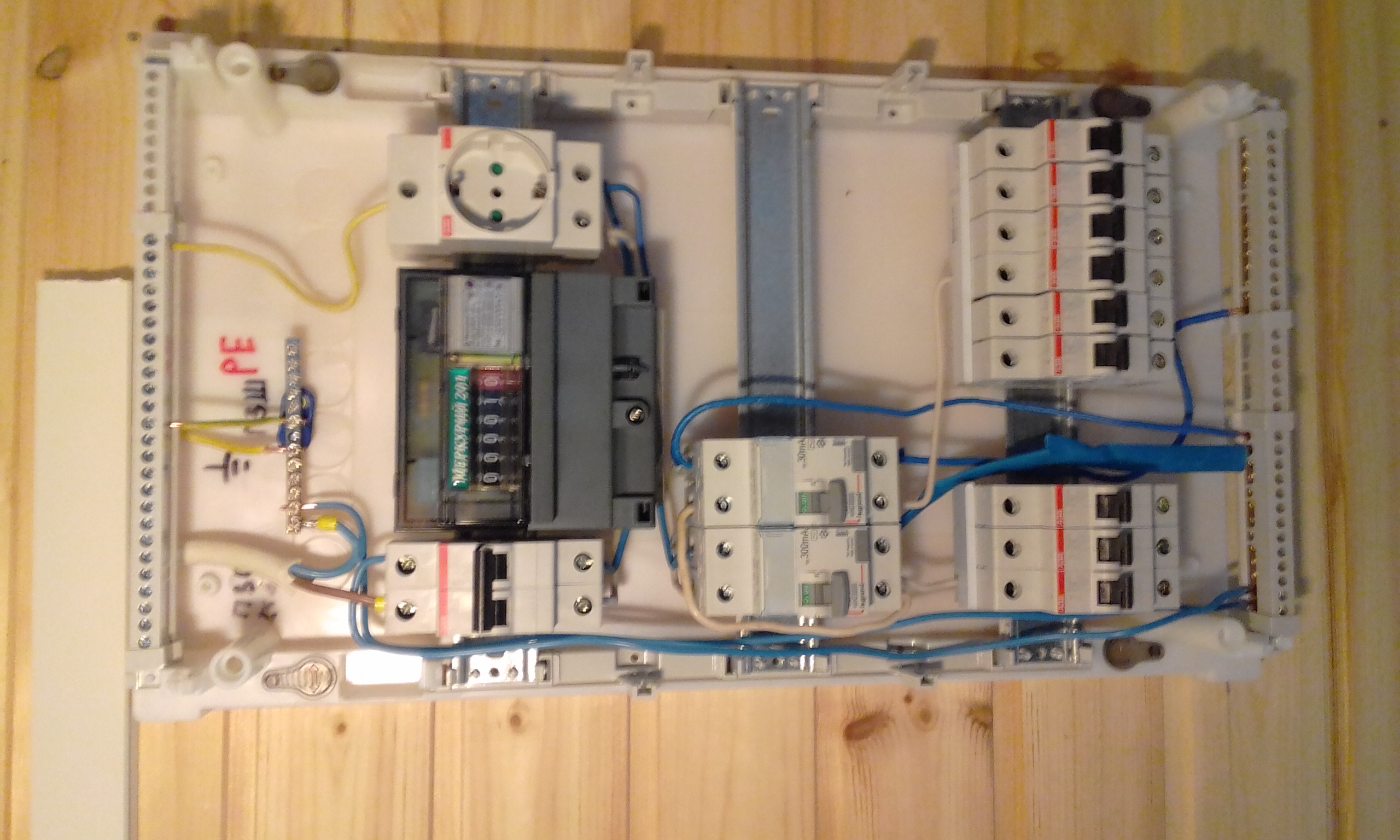 Провод 6 кв. мм от заземляющего провода подключил на ГЗШ. Также ГЗШ соединил с шиной N и шиной PE.