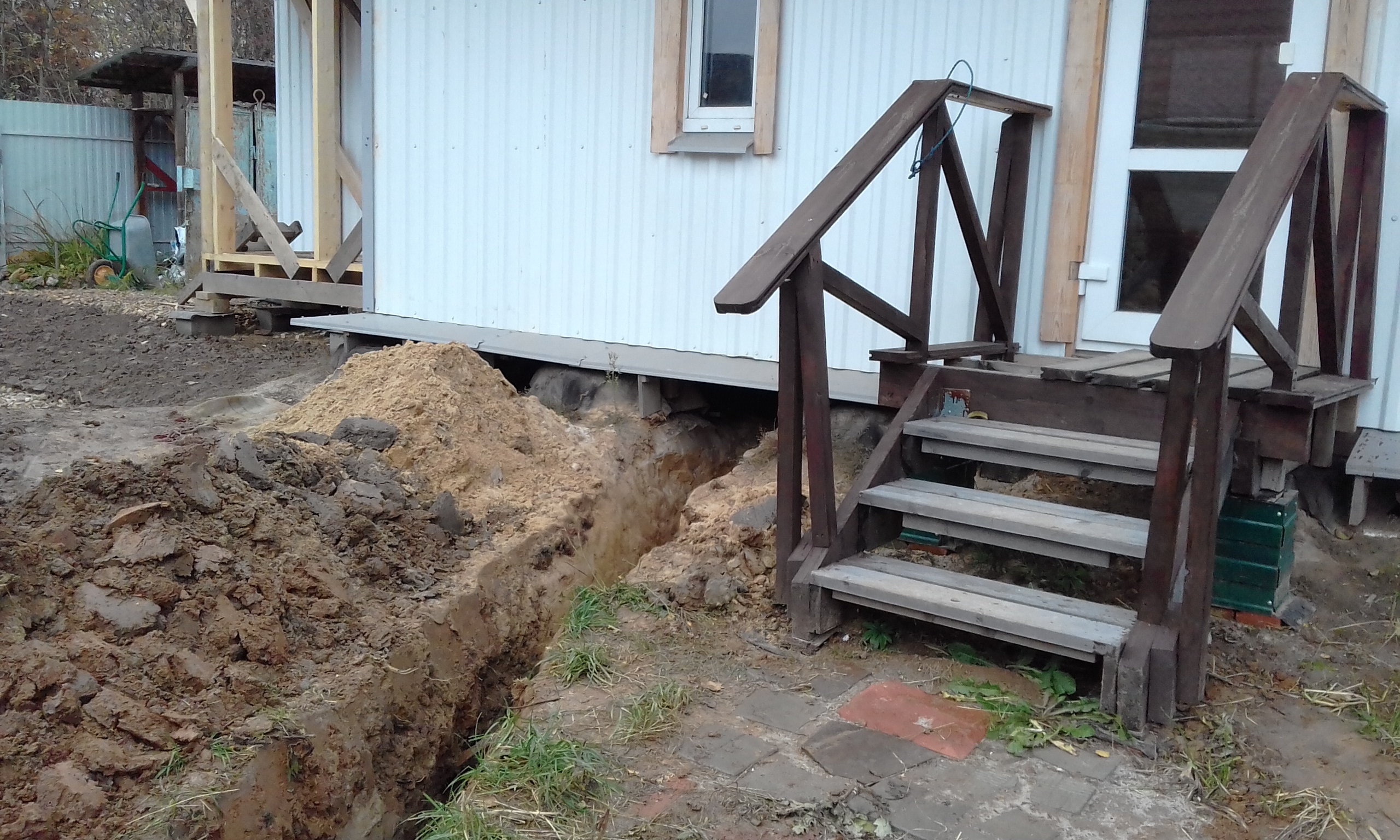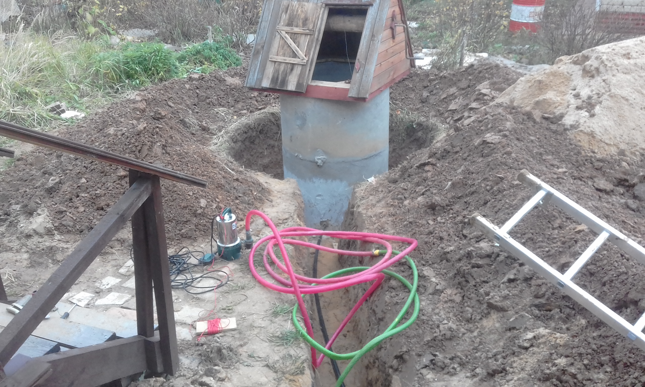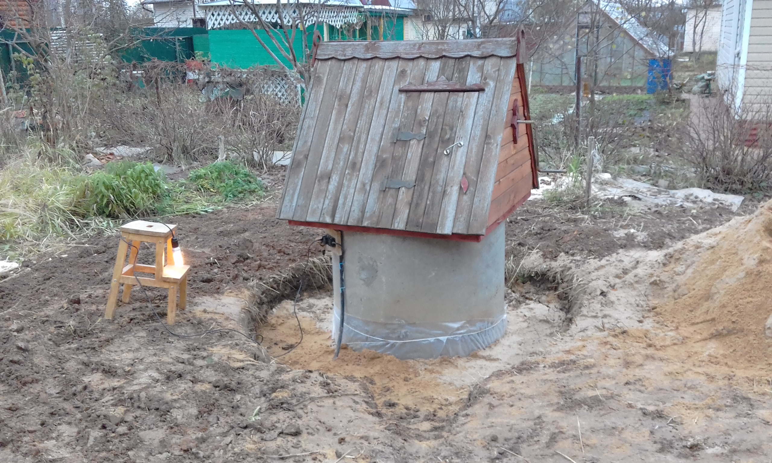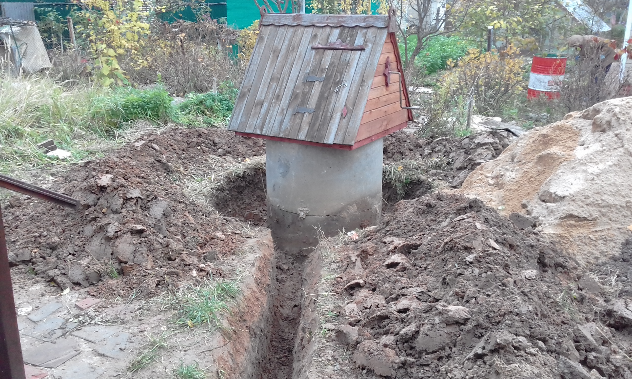 Отрыл траншею от колодца до дома и обкопал колодец на глубину 70 см. Может завтра углублю траншею, полностью откопаю второе кольцо, нанесу на него гидроизоляцию и ещё некоторые советуют полиэтиленовой плёнкой кольца обмотать.