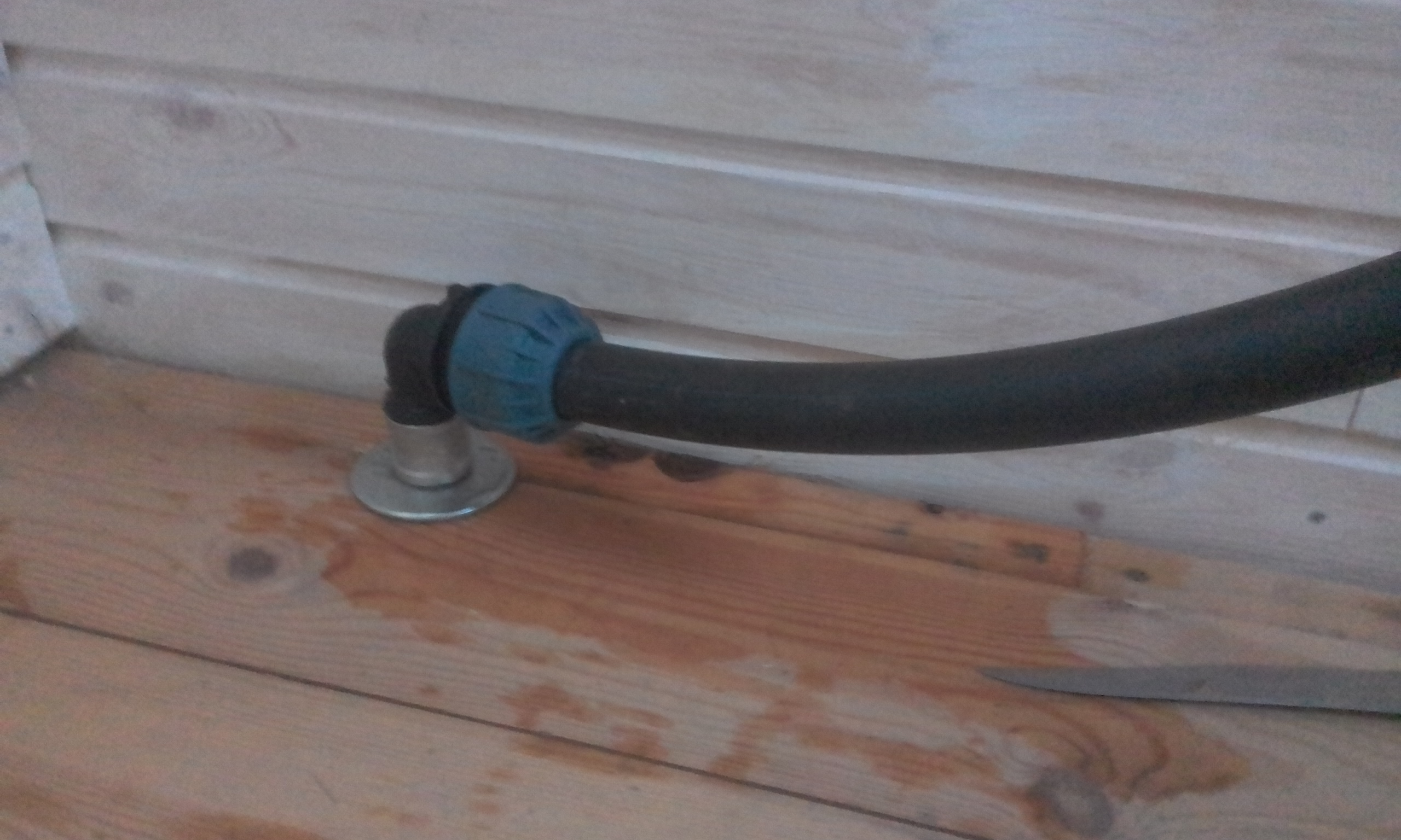 Соединил вертикальный и горизонтальный участок трубопровода фитинг-уголком.