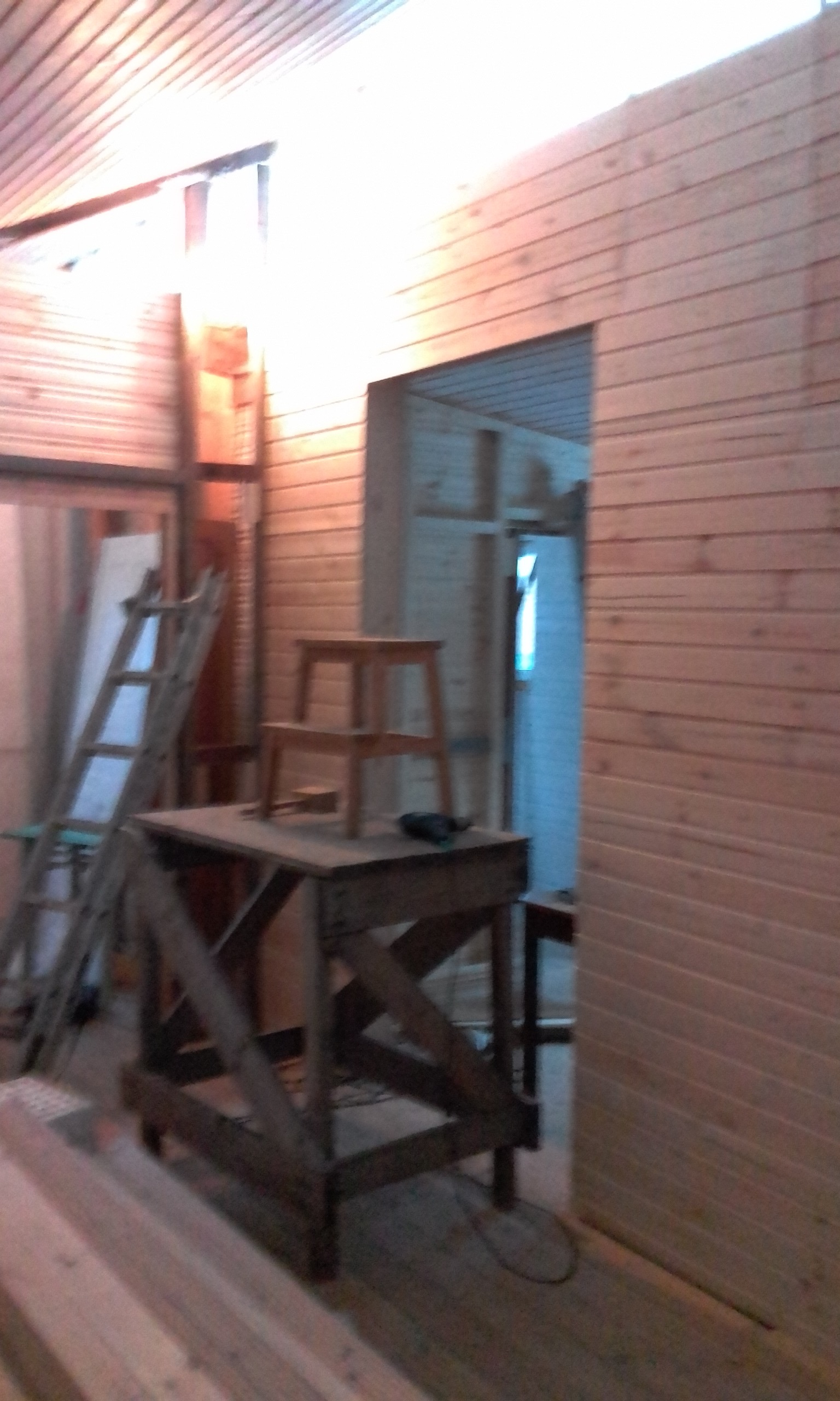 Продолжаю обшивать центральную стену. Приступил к последнему не обшитому углу.