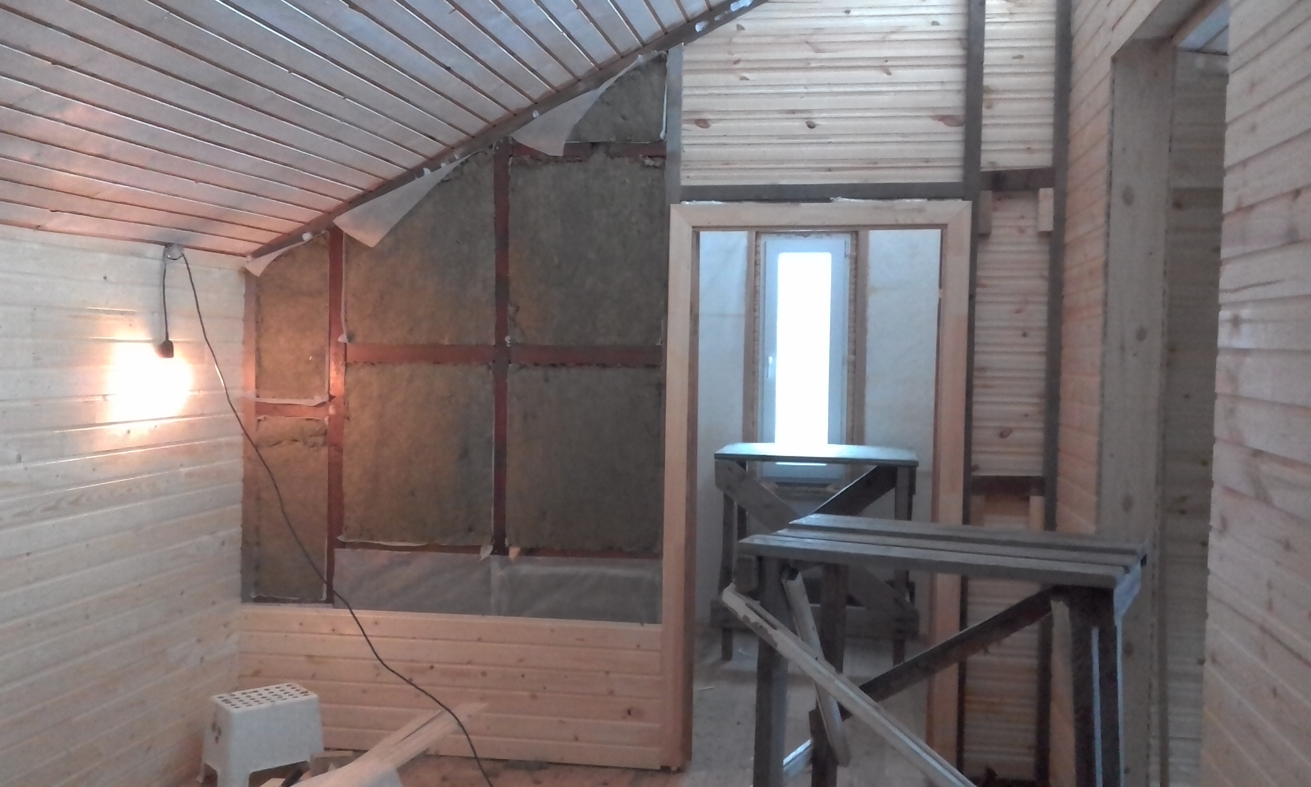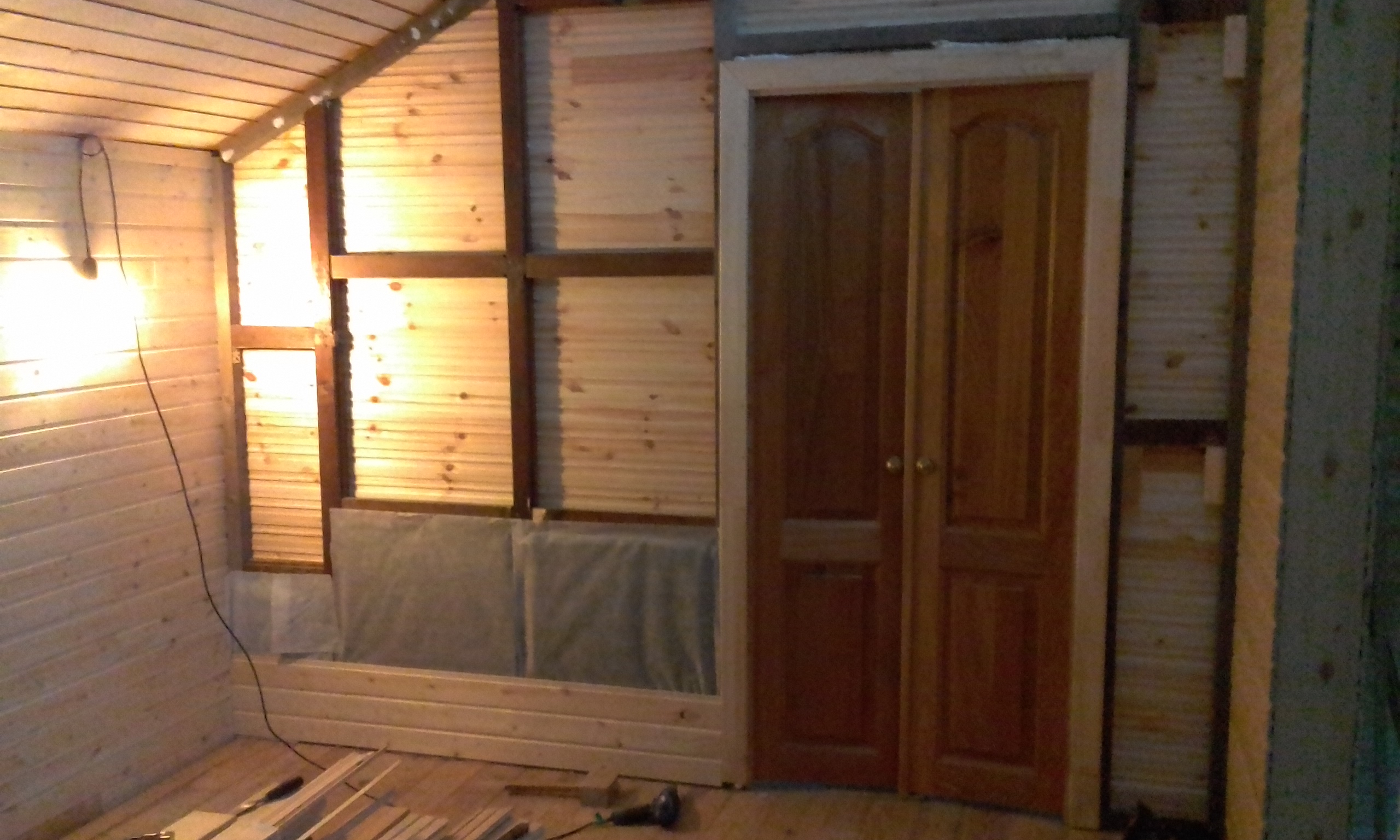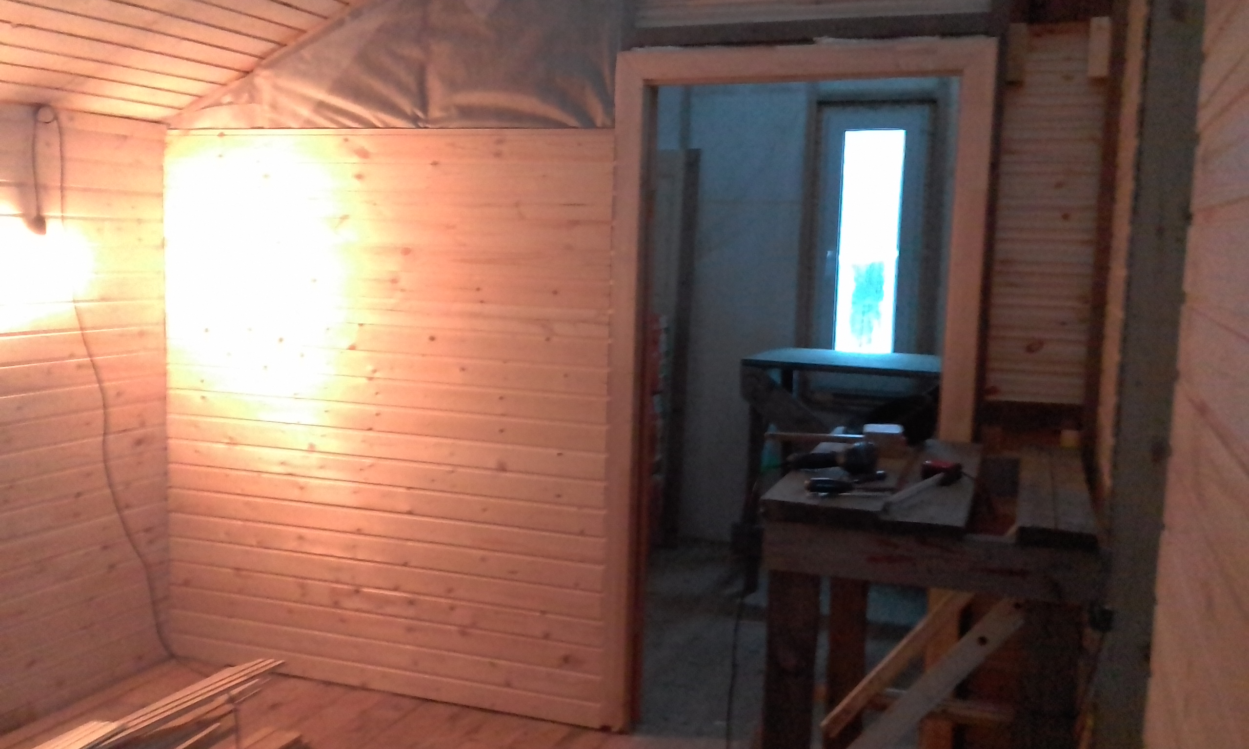 Закончил обшивку центральной стены и перегородки комнаты дочери.