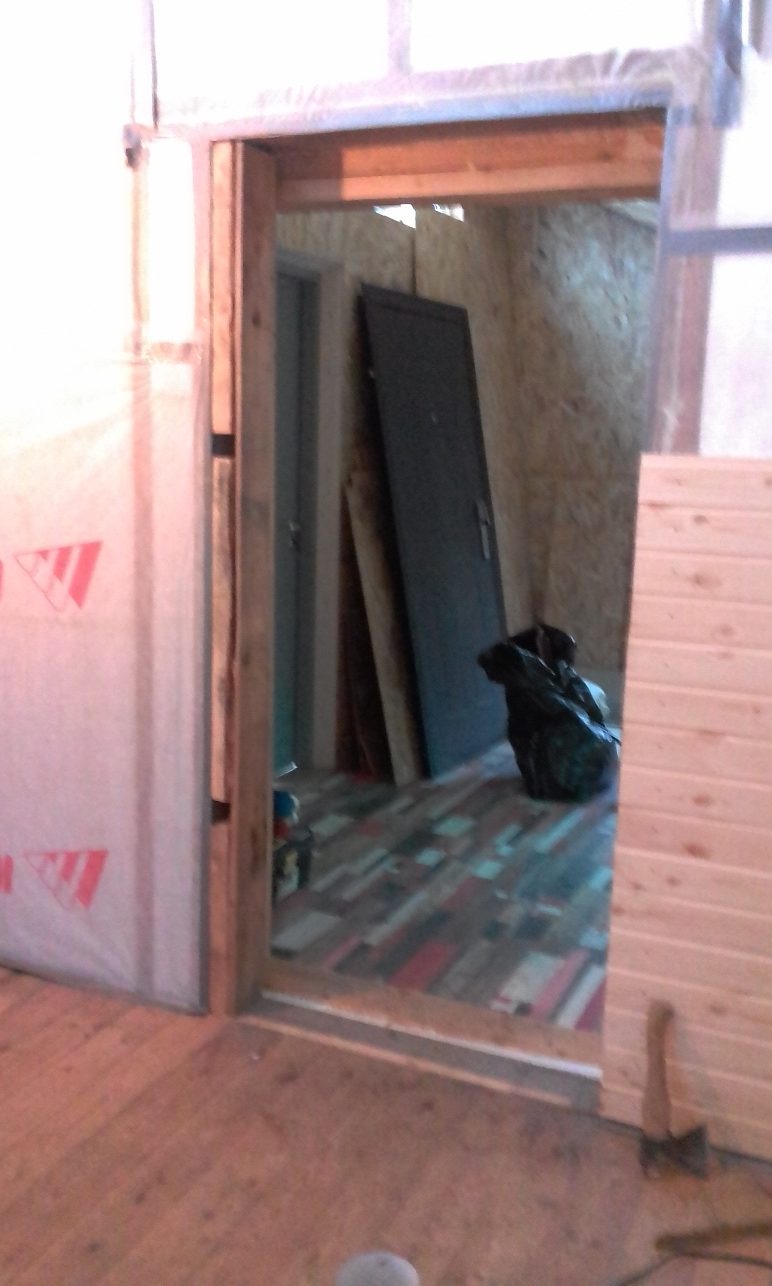 Установил добор из обрезков досок 50 мм и доски 25 мм, для уменьшения ширины проёма для дверного полотна шириной 800 мм.