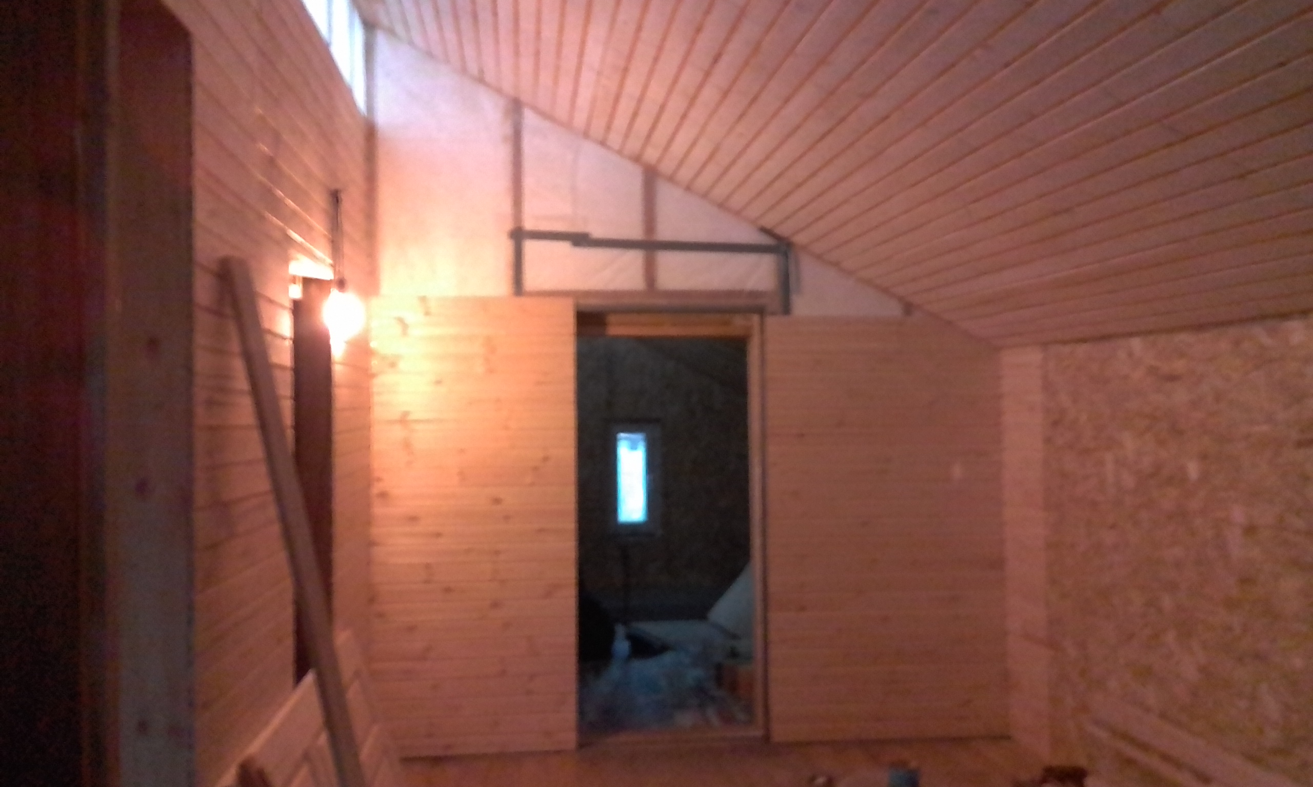 Обшил последнюю внутреннюю стену дома больше половины её площади.