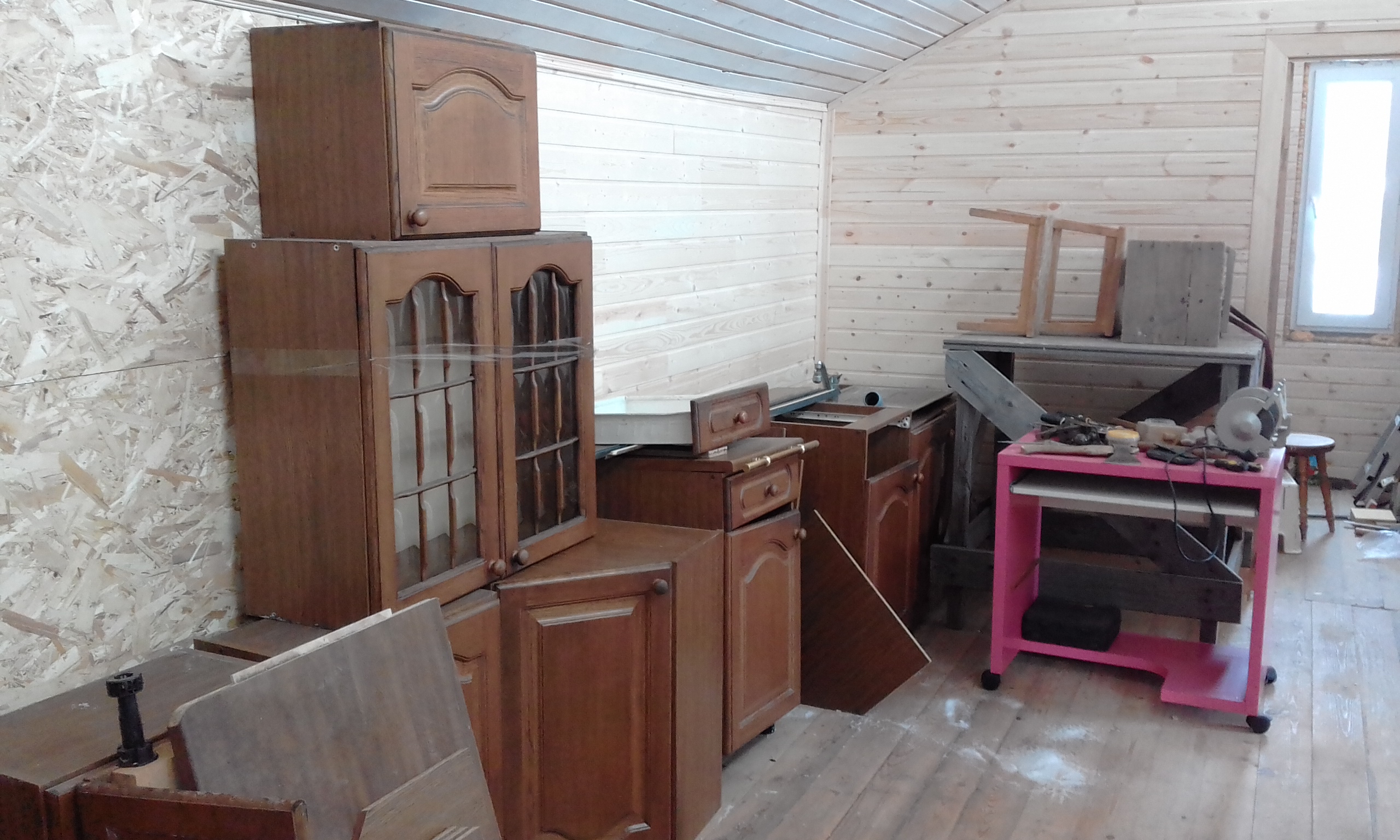 Завезли кухню. Взяли с рук на "Авито". Кухне 10 лет. С мойкой, смесителем и сливом 5 тыр. "Газель" 2 тыр. по Москве и 30 руб./км за МКАД. Шкафчики снимал и смеситель откручивал сам. Поясница немного заболела, когда шкафчики со стены снимал.
