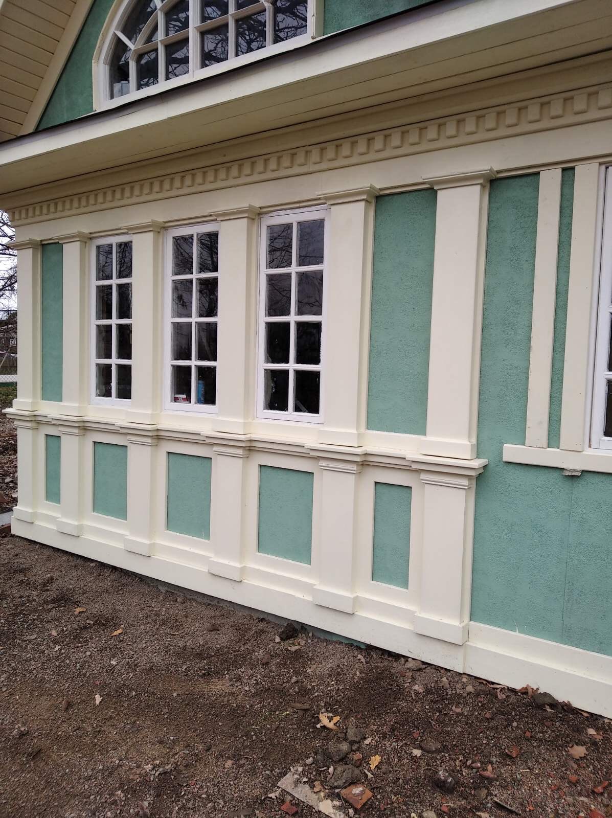 Фрезером немного работал для всяких наличников и других красот , обрабатывая доски , вот как под крышей на фото , все из дерева. .