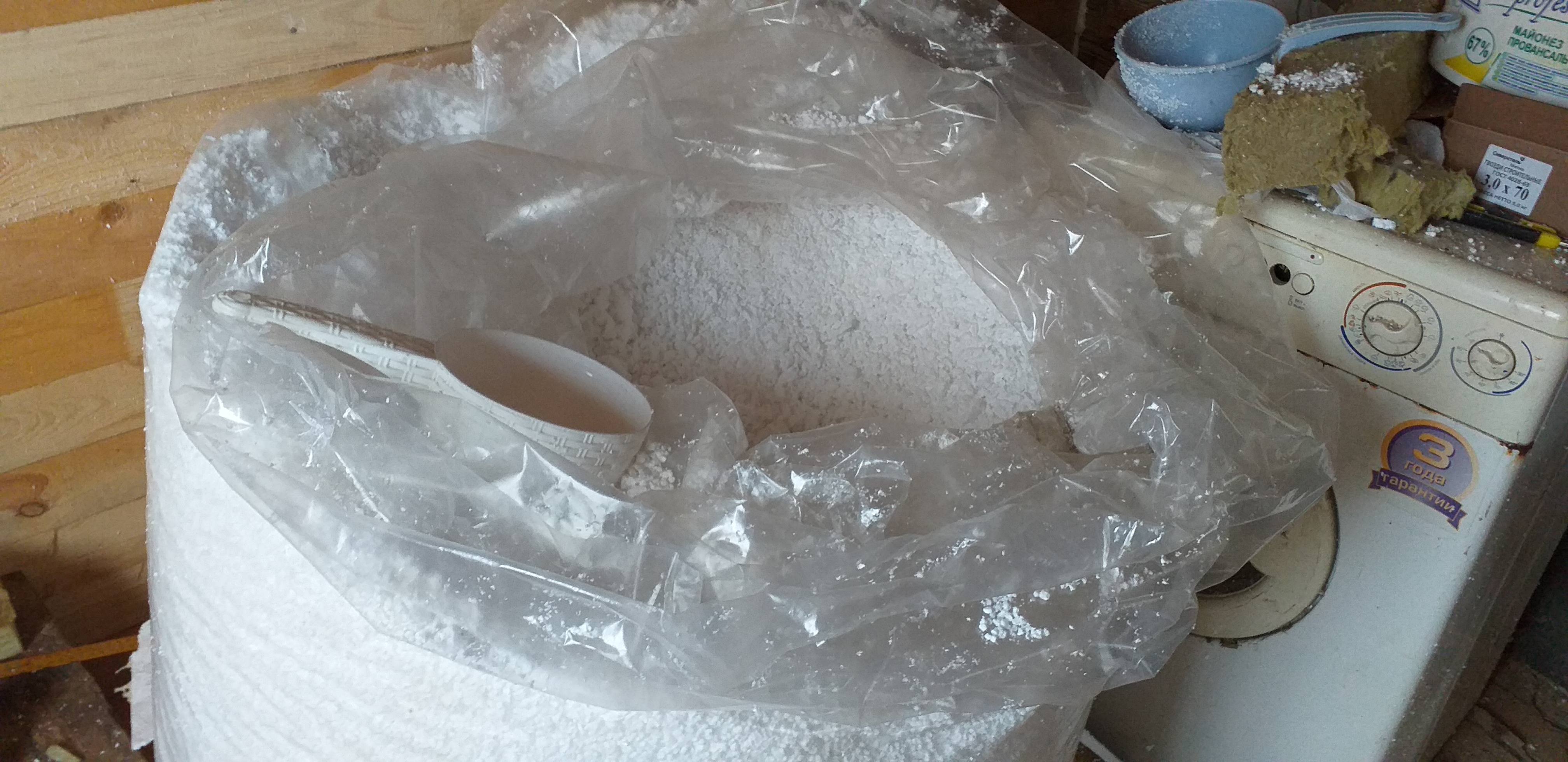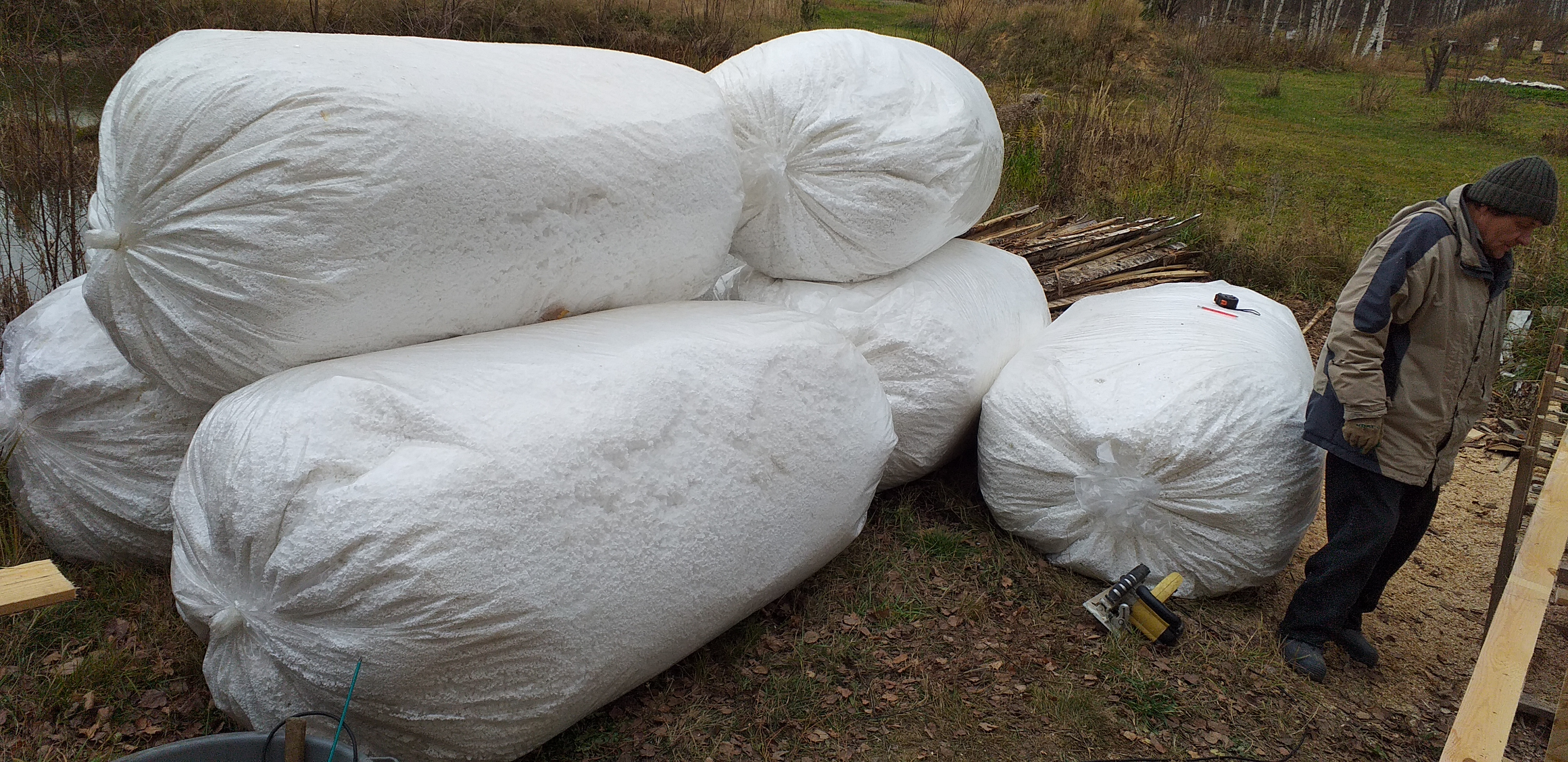 Кстати,Агаонов тоже утеплил северную сторону своего дома пенопластовой крошкой.