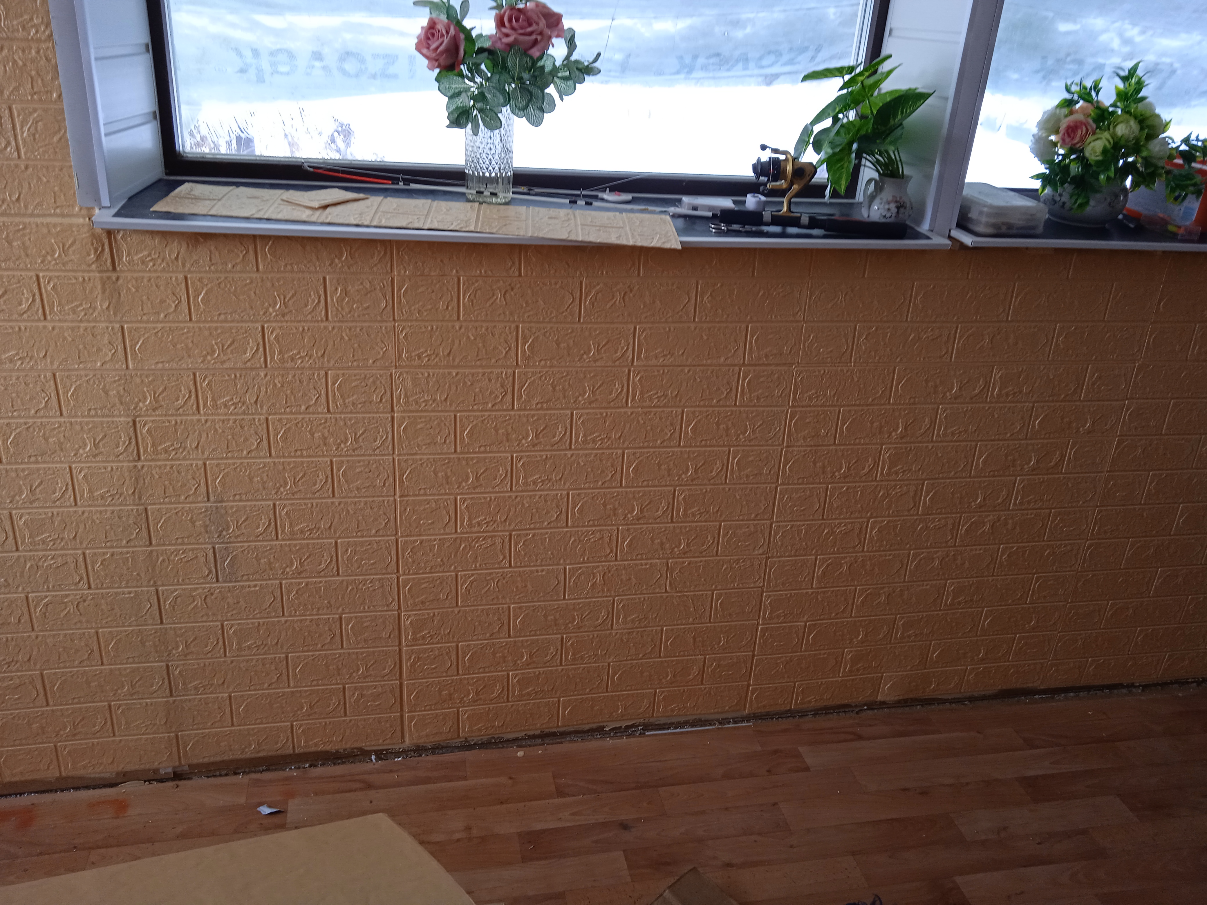 Переклеили всю комнату. Это клеющиеся обои из Китая.Листы 70 х78 см.Клеить их на стены одно удовольствие.