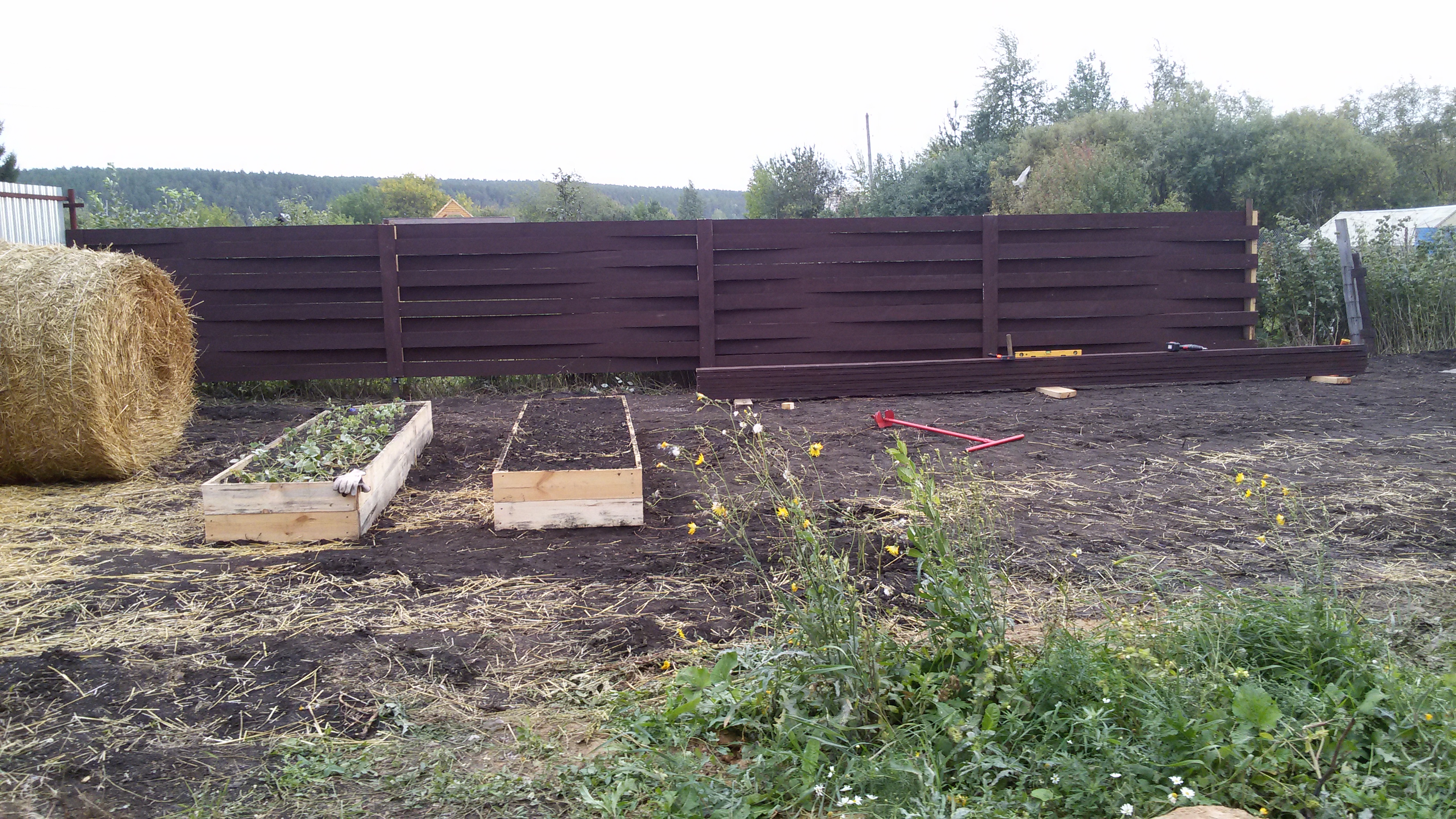 Кстати, не отчиталась за забор (еще в августе-сентябре делали). Забор плетенка из досок 25*150*6000. Покрашены финским составом, варила сама, красили с сыном.