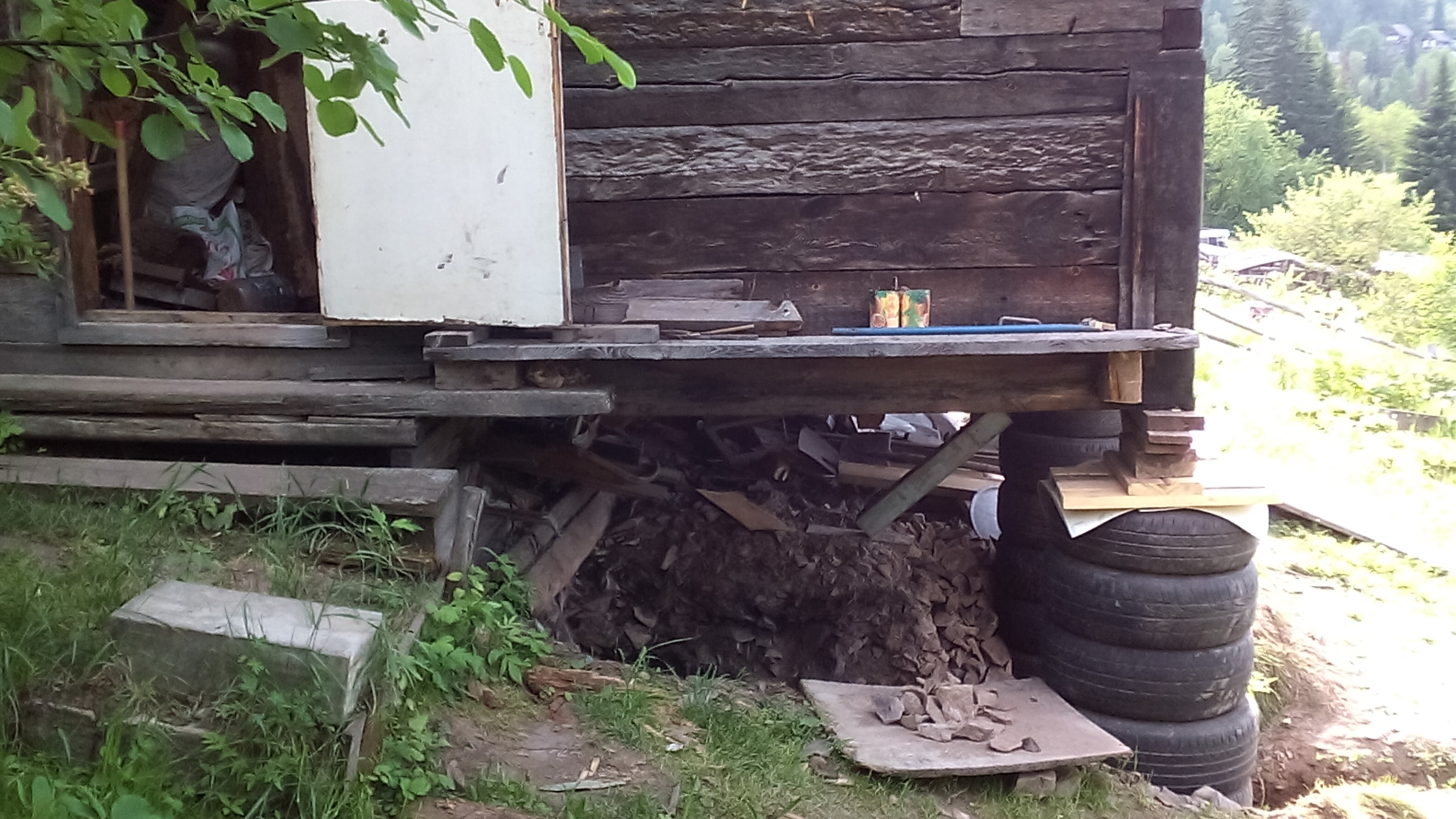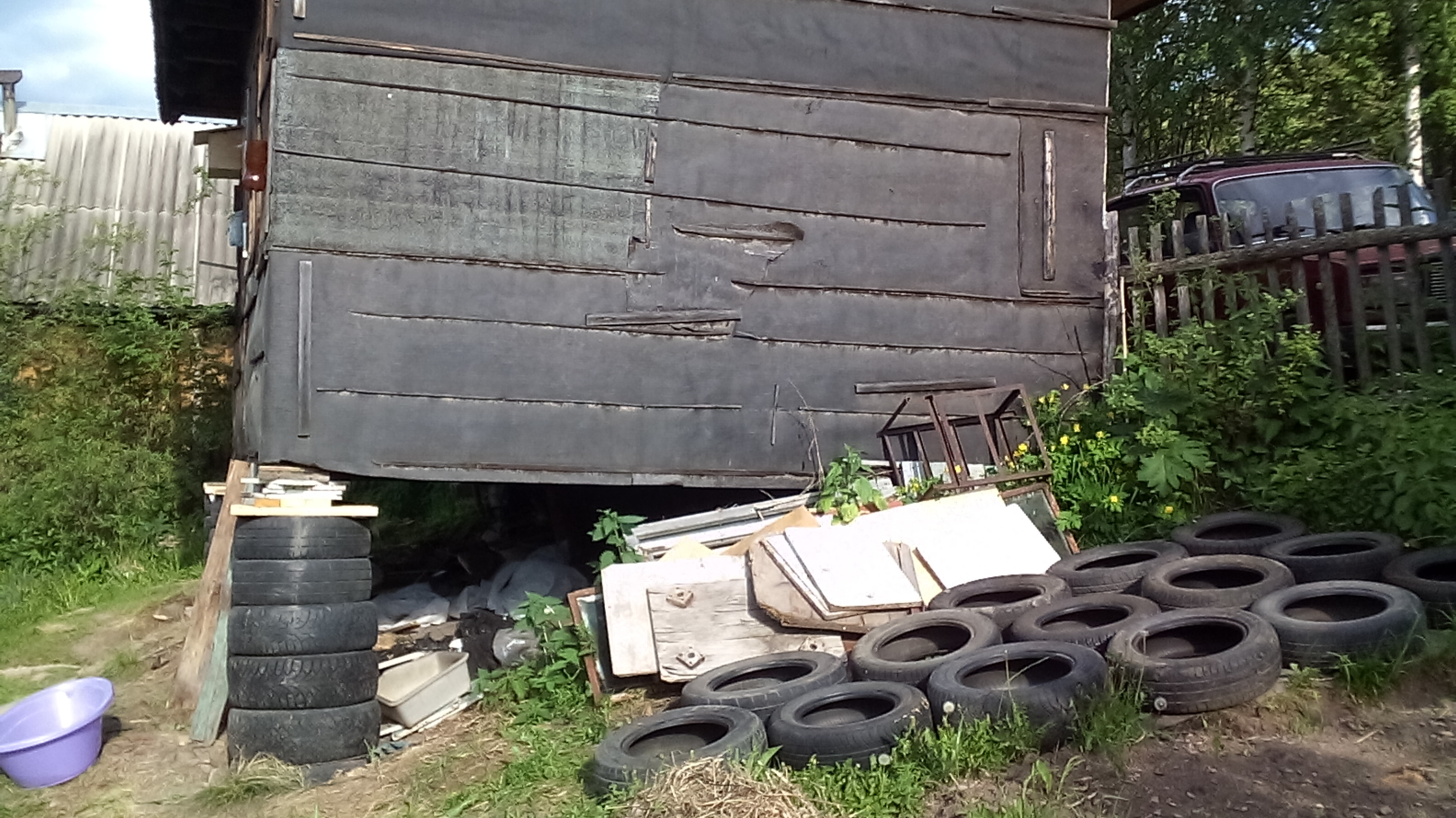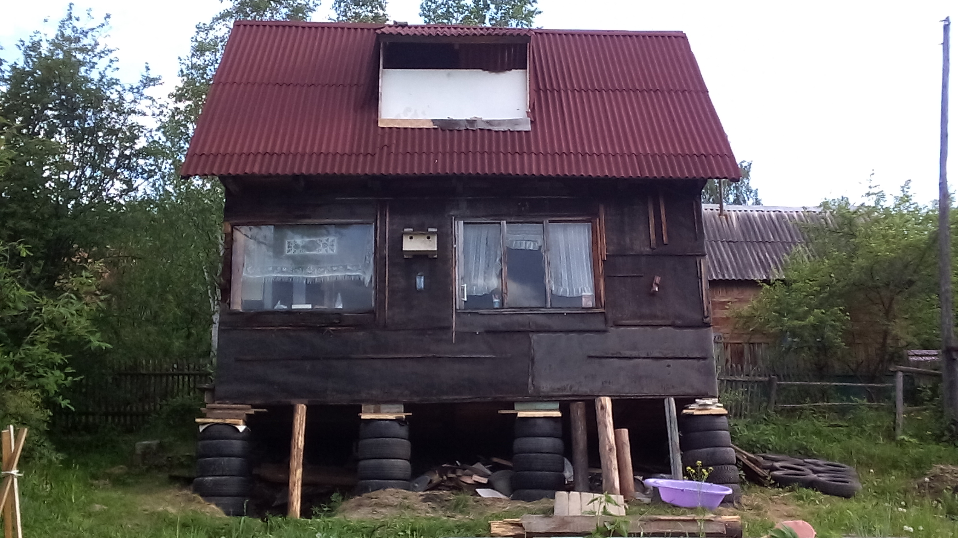 6. Сверху на покрышки рубероид, обвязку и на это дело дом.