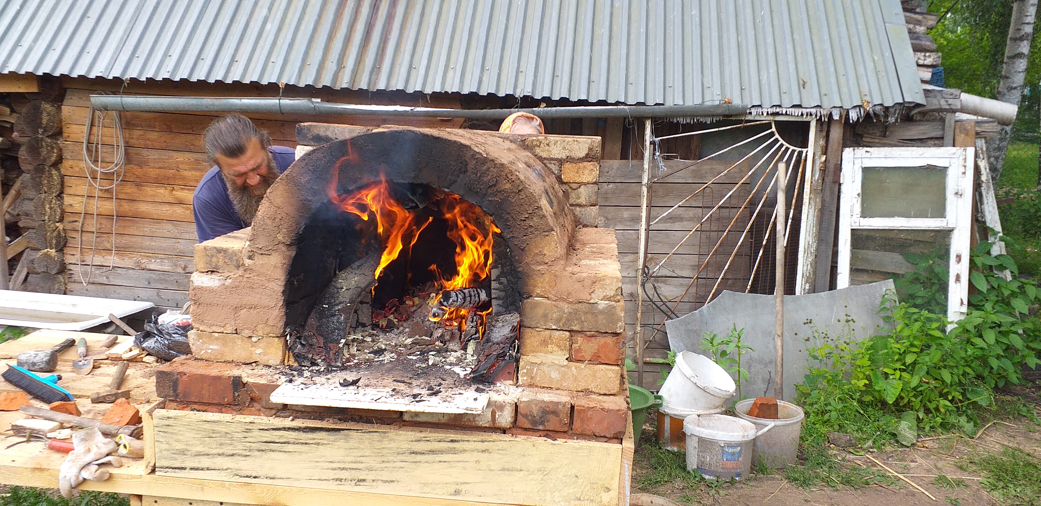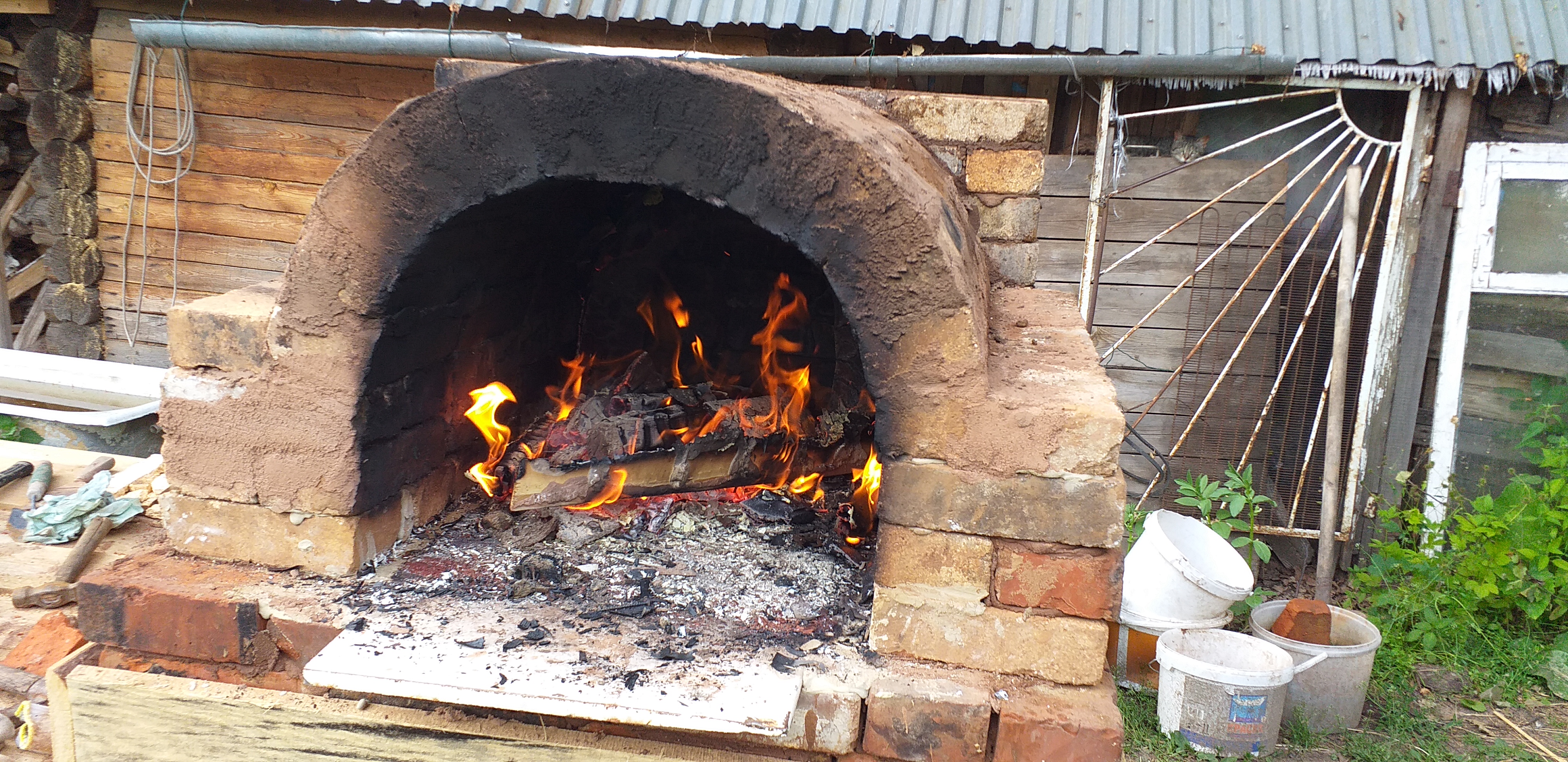 она уже подсохла под солнцем. и пламя это от сгорания кружала внутри. появились маленькие не криминальные трещинки. которые я замазала, когда свод разогрелся. Сделали не ногу свиную, но шашлычки. Под настоечку хорошо пошли. Прямо замечательно!
