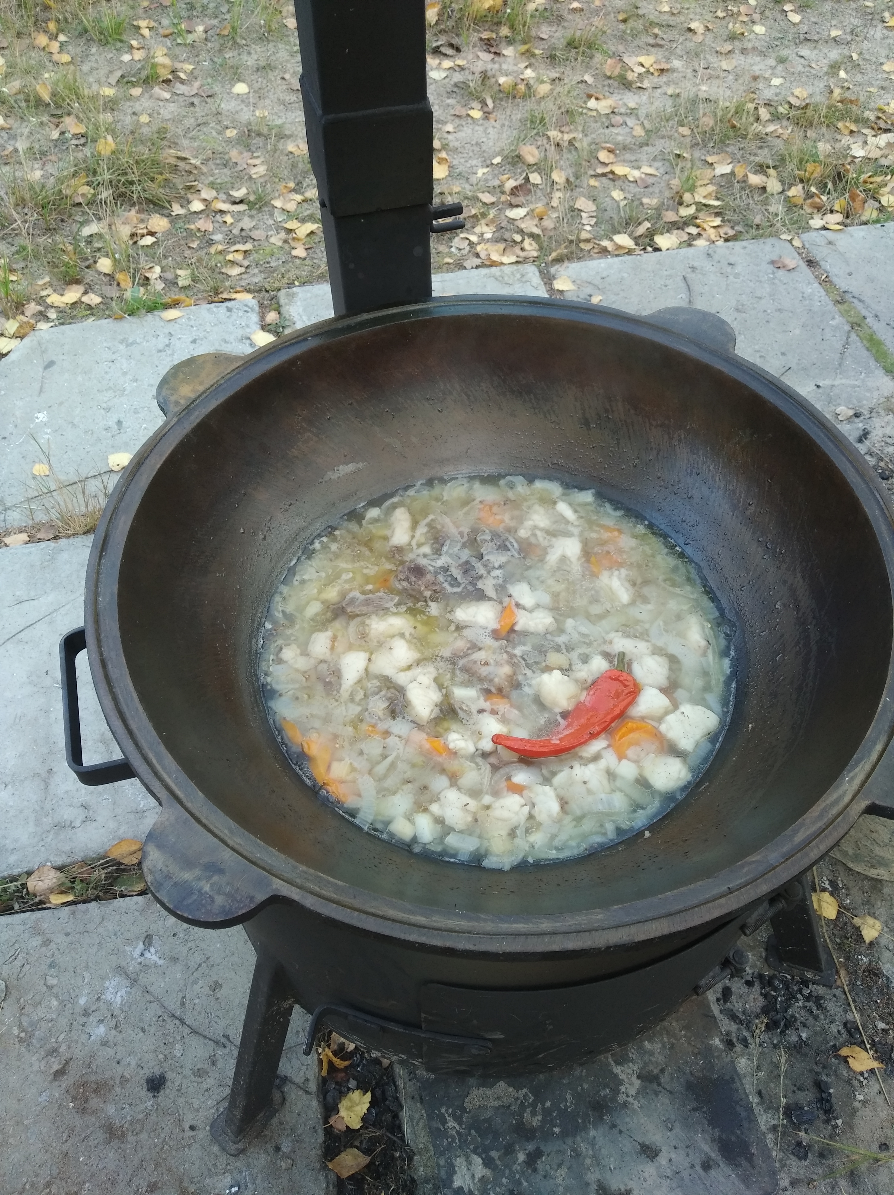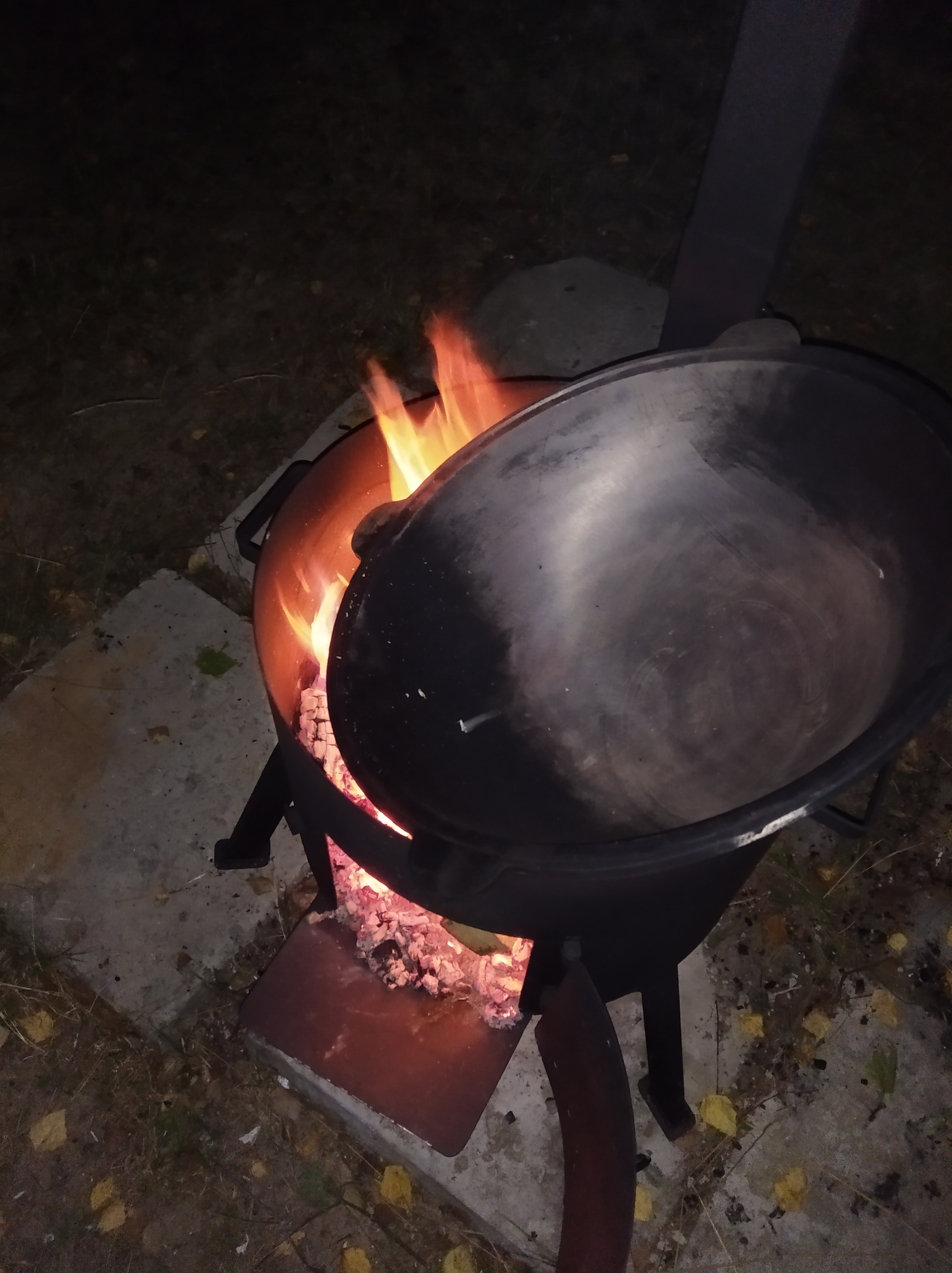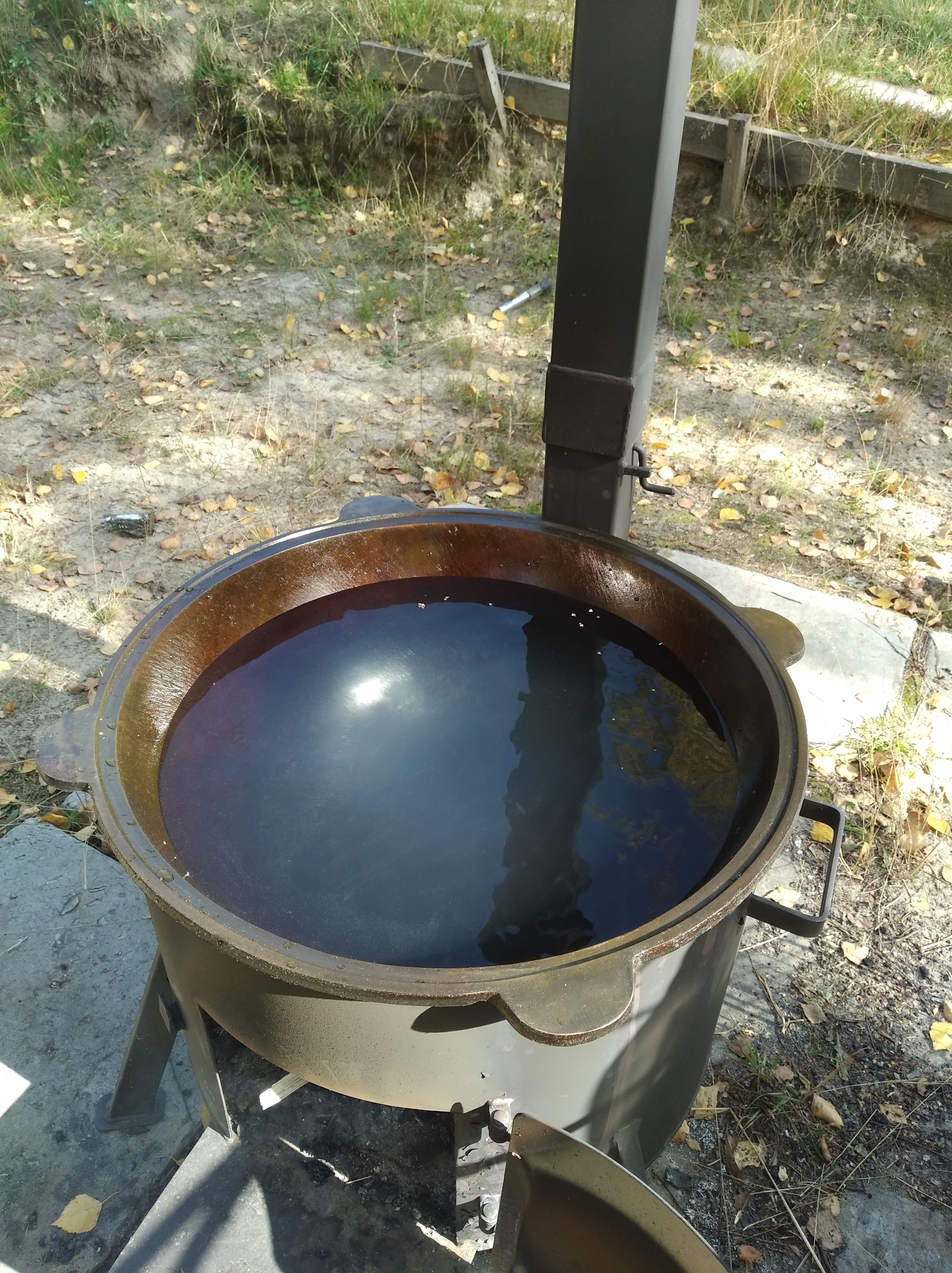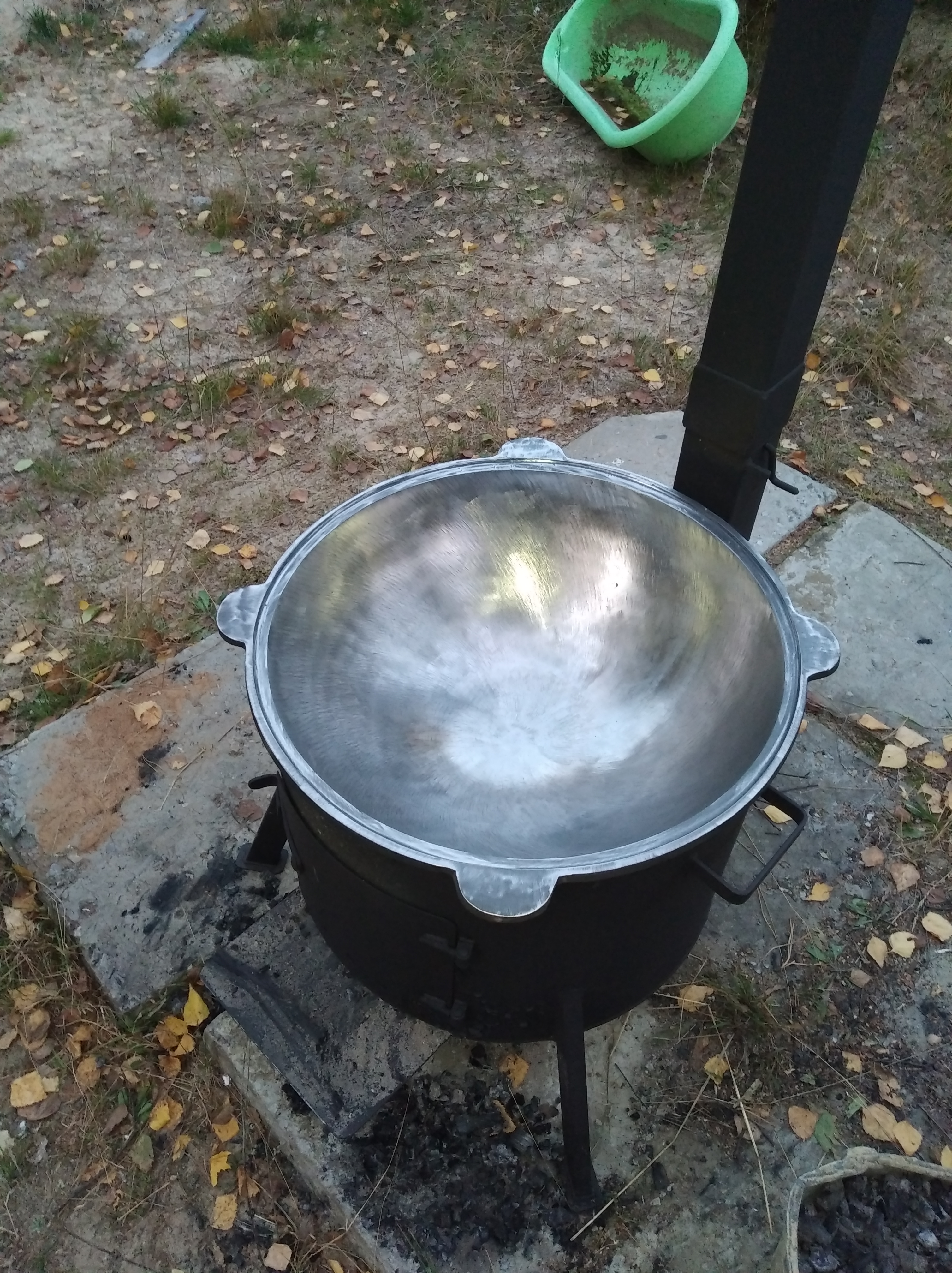 Сегодня с утра в ожидании гостей и первого боевого испытания казана решил сначала скипятить в нём воду, типа заодно и помыться