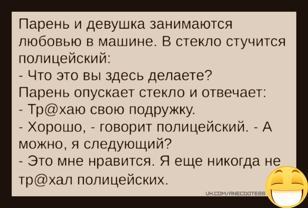 ГАИшник останавливает машину, а водила ему чего вы меня тормозите, там километр назад ВАШЕГО СБИЛИ, на обочине лежит, бабка около него плачет. Гаишник подрывается едет и через километр видит бабка плачет над сбитым козлом. :rofl: :lol2: