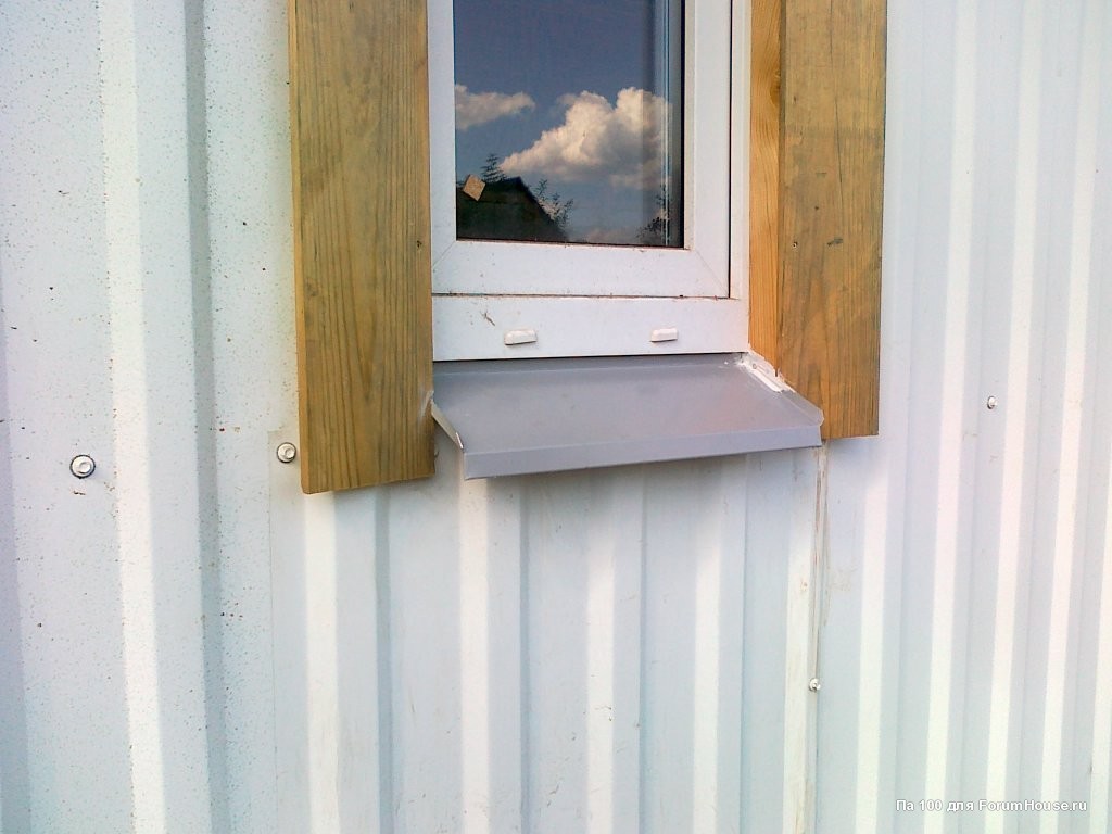 Установил отливы под окна. В вертикальных брусках, которые как бы откосы, делал борозды глубиной 2 мм и в них вставлял отливы на саморезы. Затем щели обрабатывал мастикой. Под отливы думаю позже закачать монтажную пену против шума от дождя.