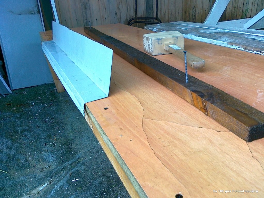 Таким образом гнул мет. листы для козырьков над окнами.