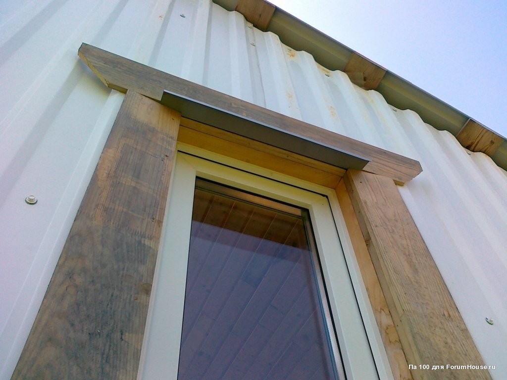 Для установки козырьков над окнами делал надрезы в обшивке стен.