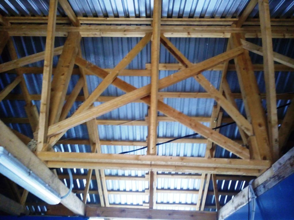 На следующий день я упорно потрудился - купил 12 листов профлиста, снял мет. профлист, содрал плоские металлические листы на фальцах и снова установил профлист. Потолочные балки и обрешётка в отличном состоянии. К сожалению смартфон забыл дома. Фото этого процесса нет.
