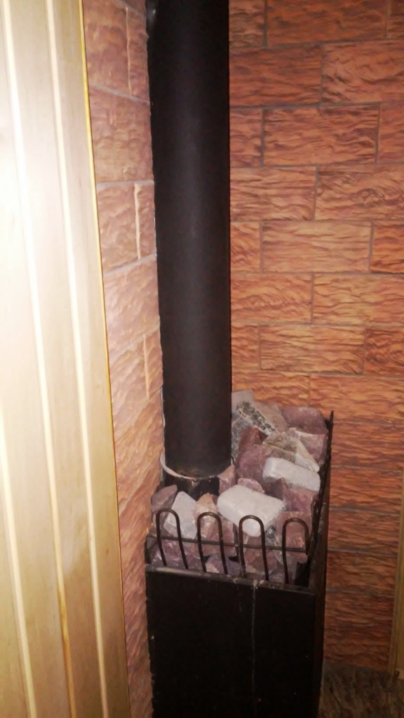 Надо ещё подумать чем металлическую трубу в парилке закрыть, от нее будет сильно жечь..