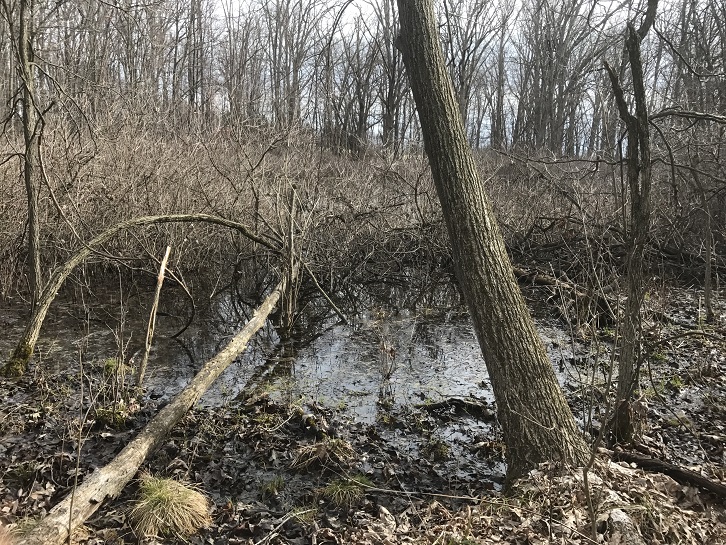 Ручей мелкий, перегорожен кое-где поваленными деревьями, поэтому, думаю, растекается в болотцо. Ну и само наше озерцо требует