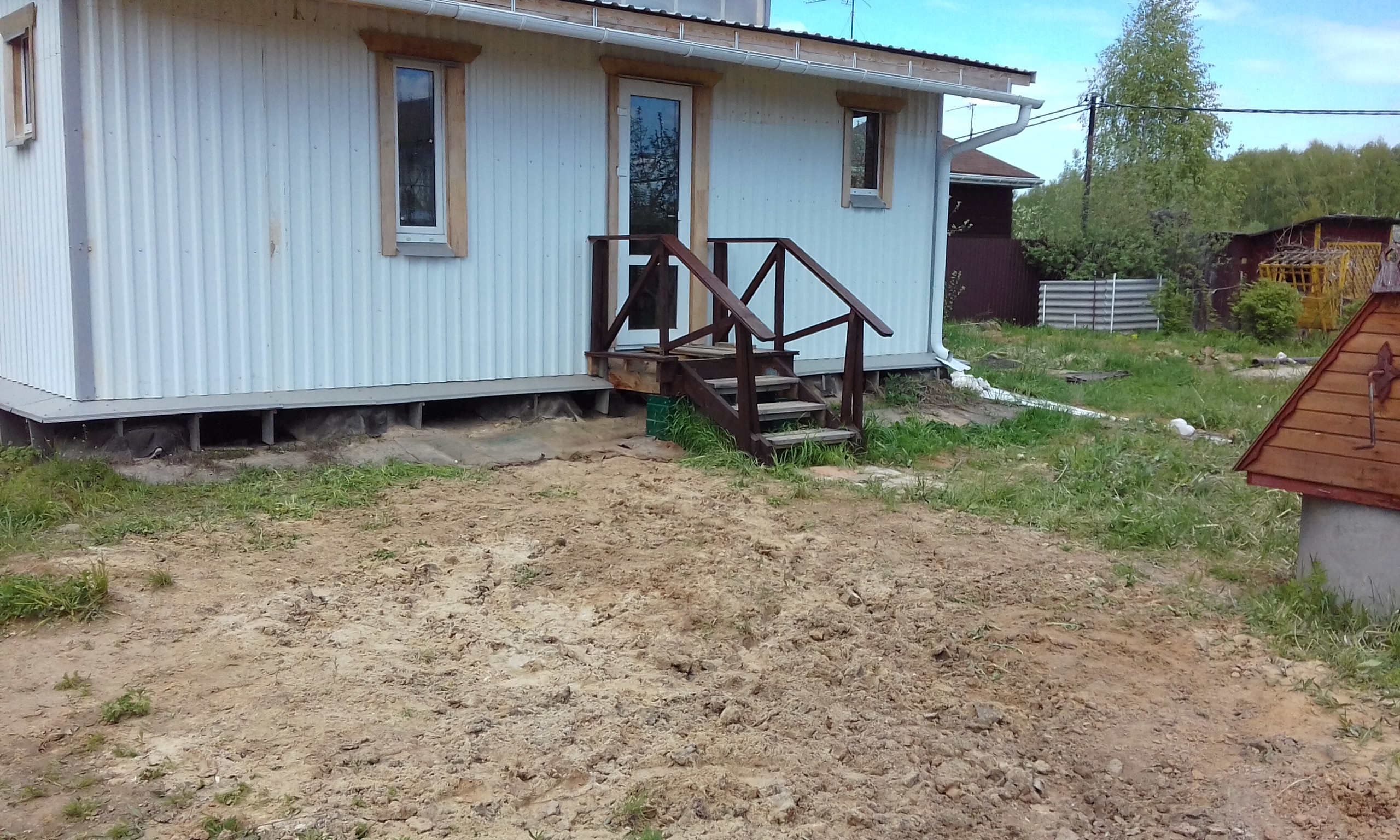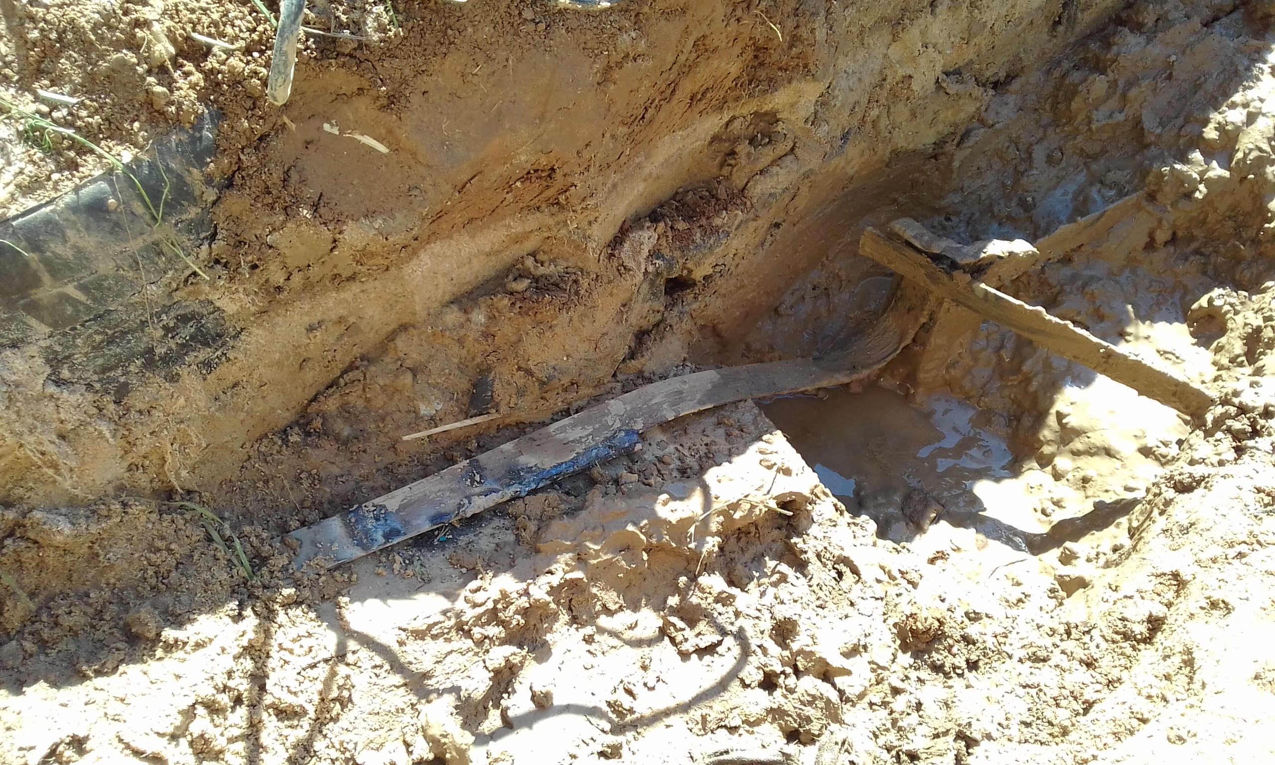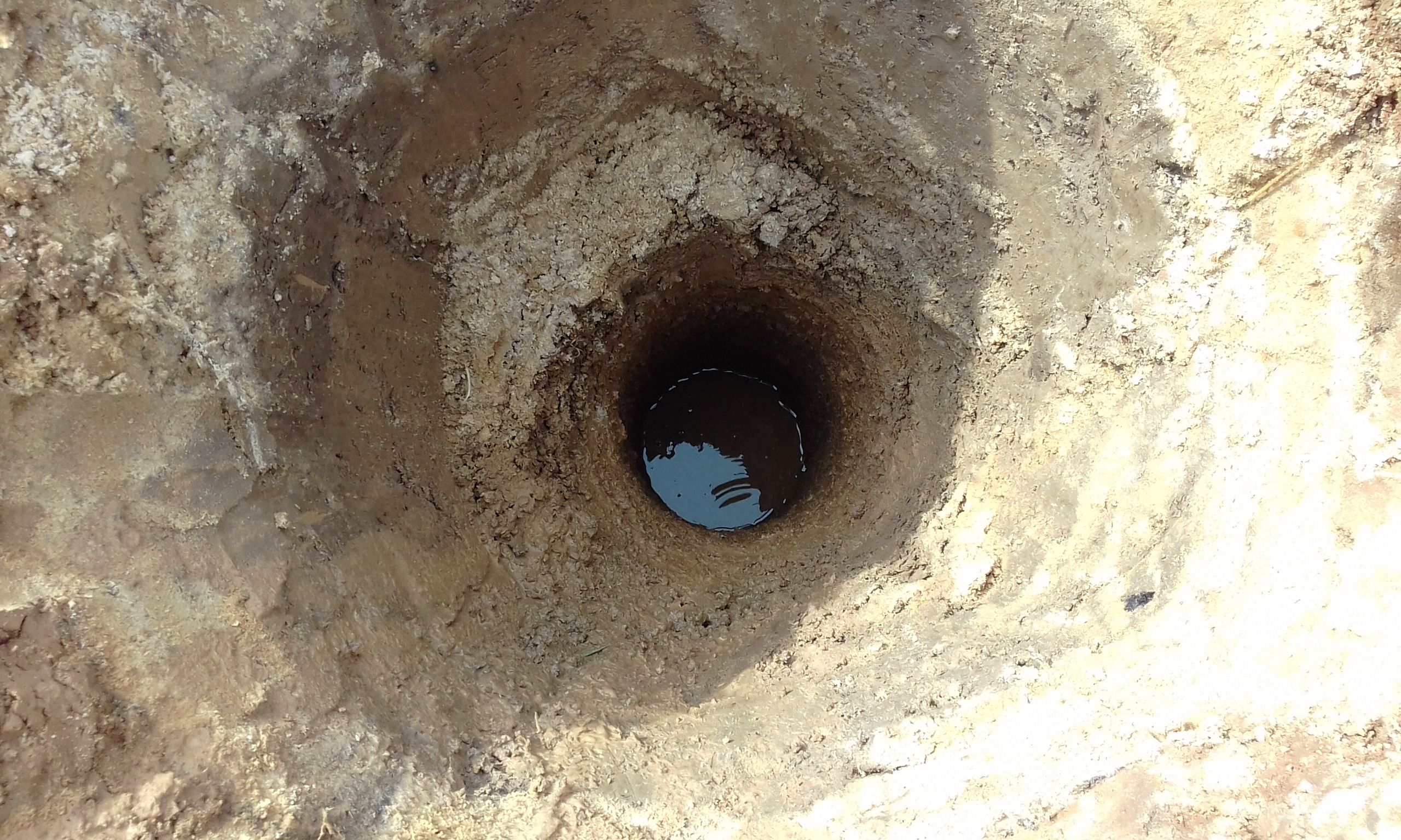 При бурении лидерной шахты верховодка появилась на глубине 80 см. Летом она уйдёт. Сейчас в колодце вода стоит на 30 см ниже поверхности земли, а летом будет на отметке - 5 м. Забил насколько получилось второй электрод. Контур треугольника заземления.