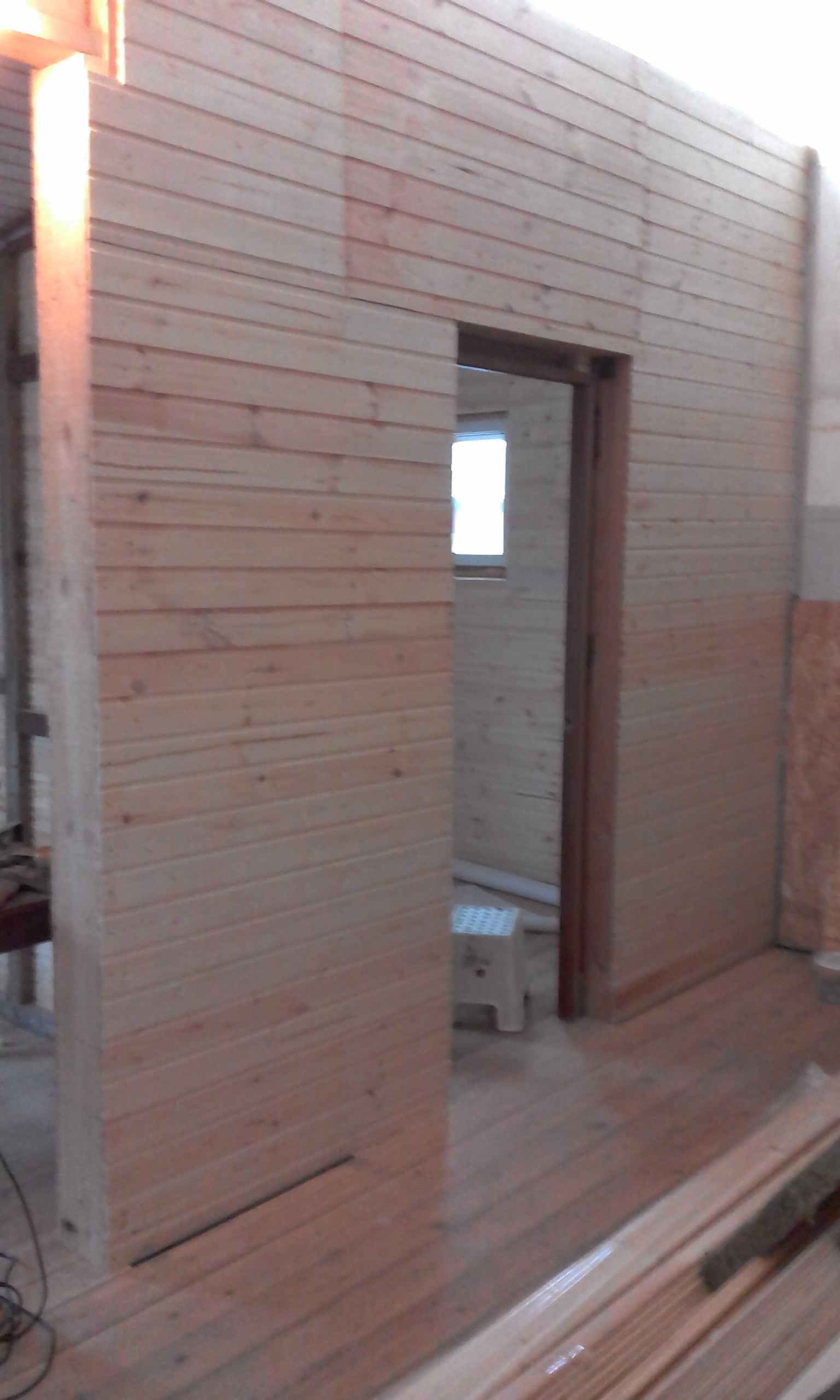Продолжаю обшивать центральную стену. Приступил к последнему не обшитому углу.