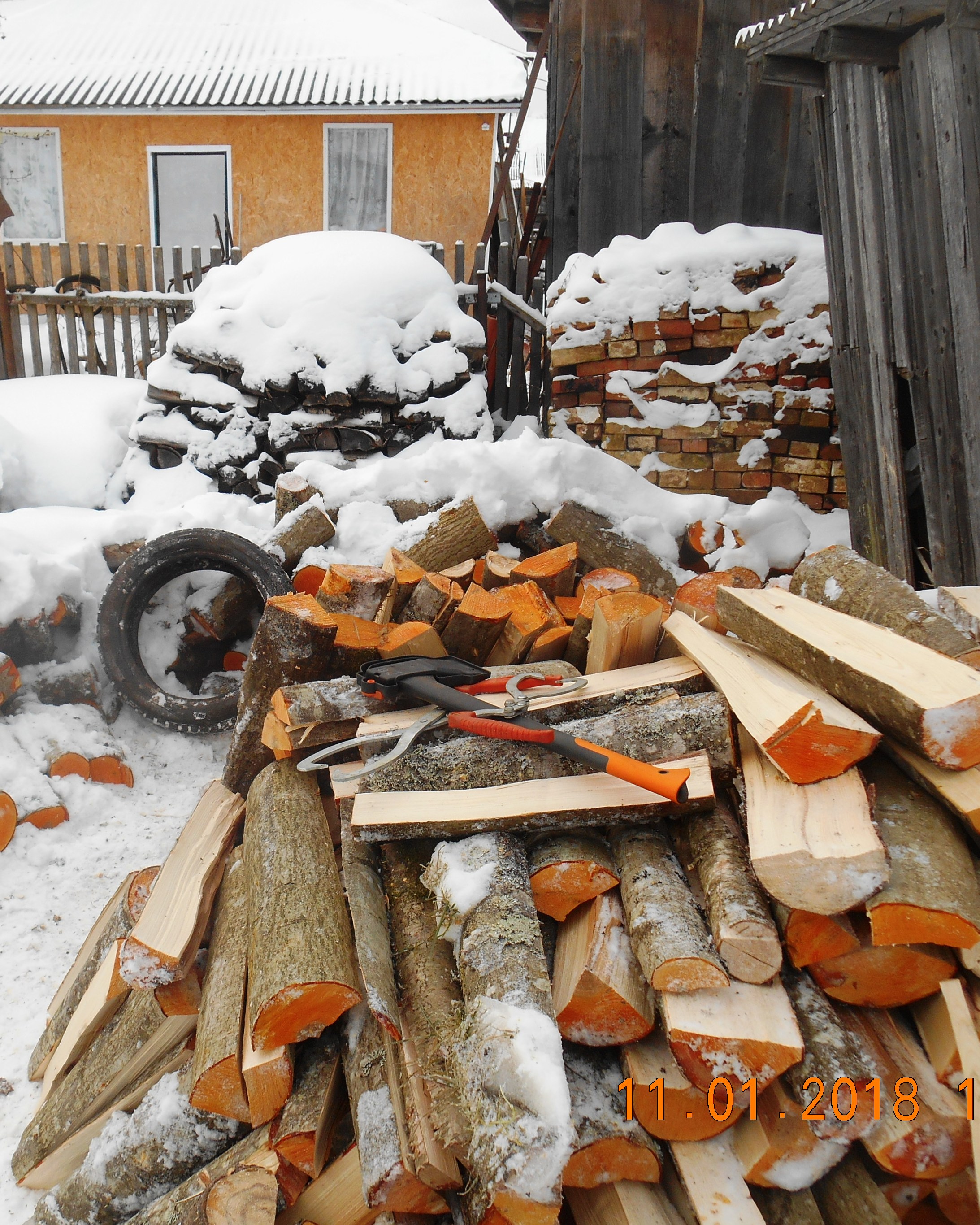 Вот хочу поделиться методой моей колки дров. Привезли перед НГ- с дровами сей год очень плохо, потому как на деляны не заехать. Возами старую 2-3 года березу отдают за 1300 куб. а я на шару разжился за 500 руб/куб пиленой ольхи. Привезли 2 трехкубовых телеги внакидку за 3 тыр. Куба 4,5 - 5 колотыми выйдет.