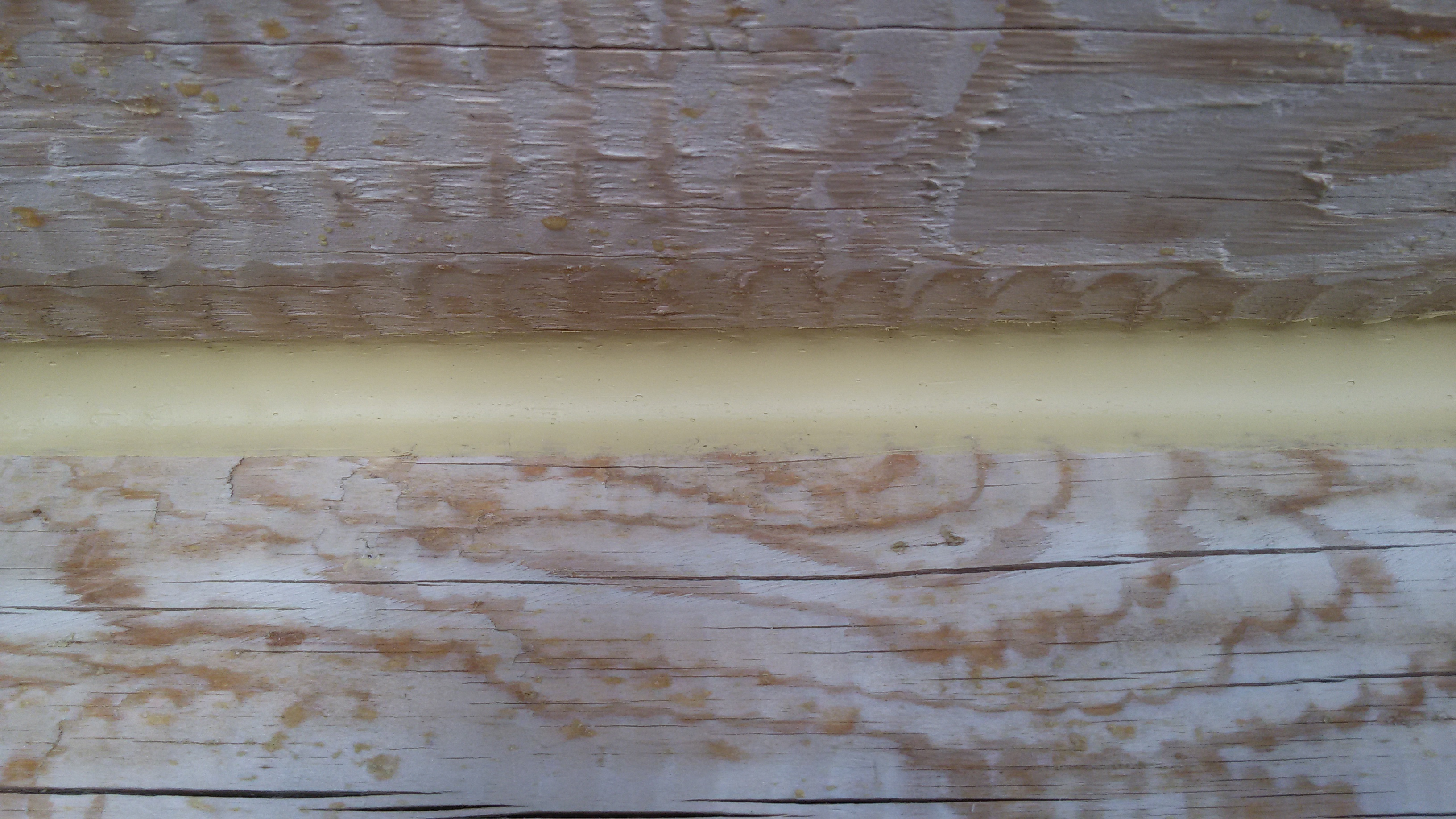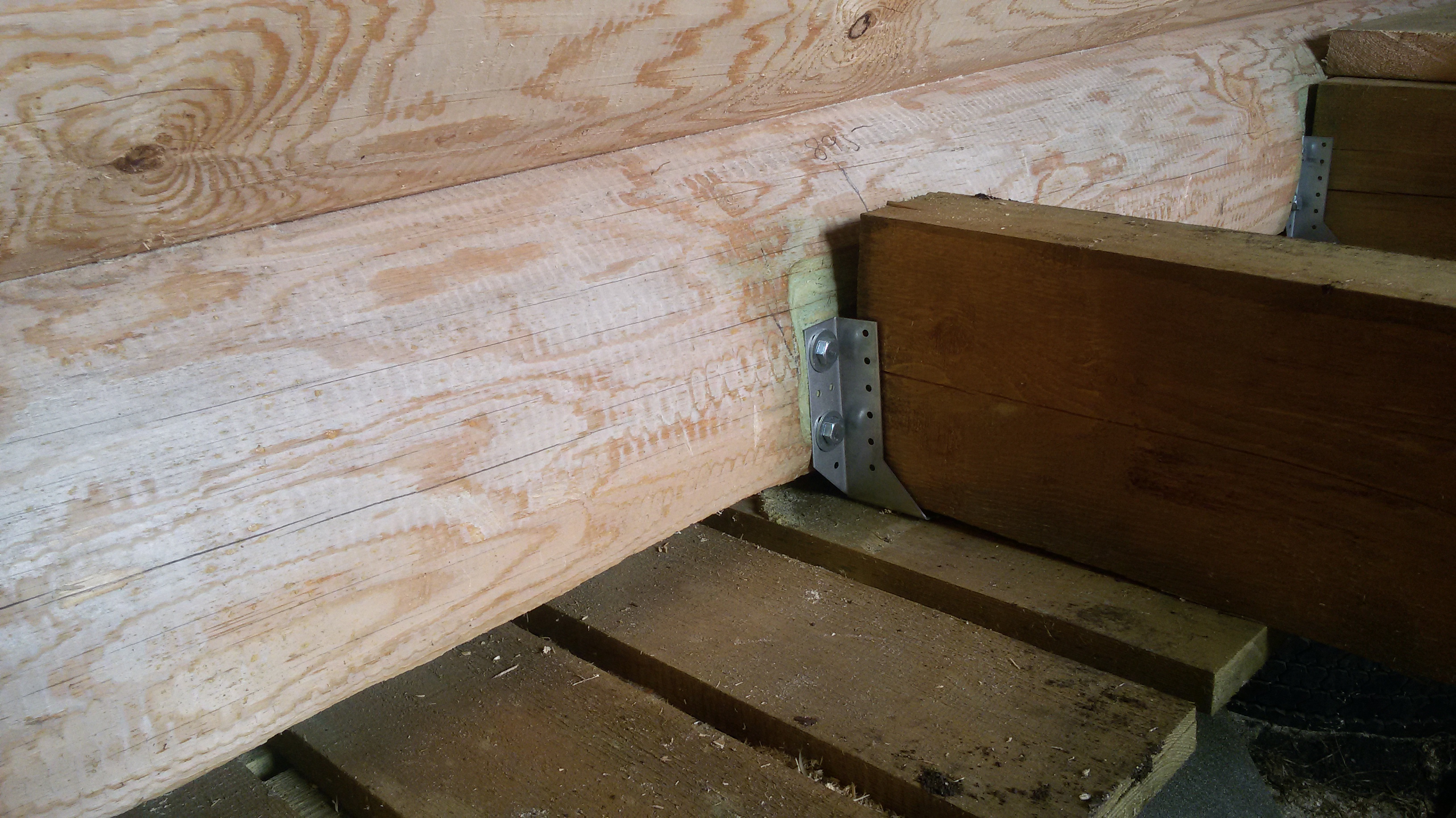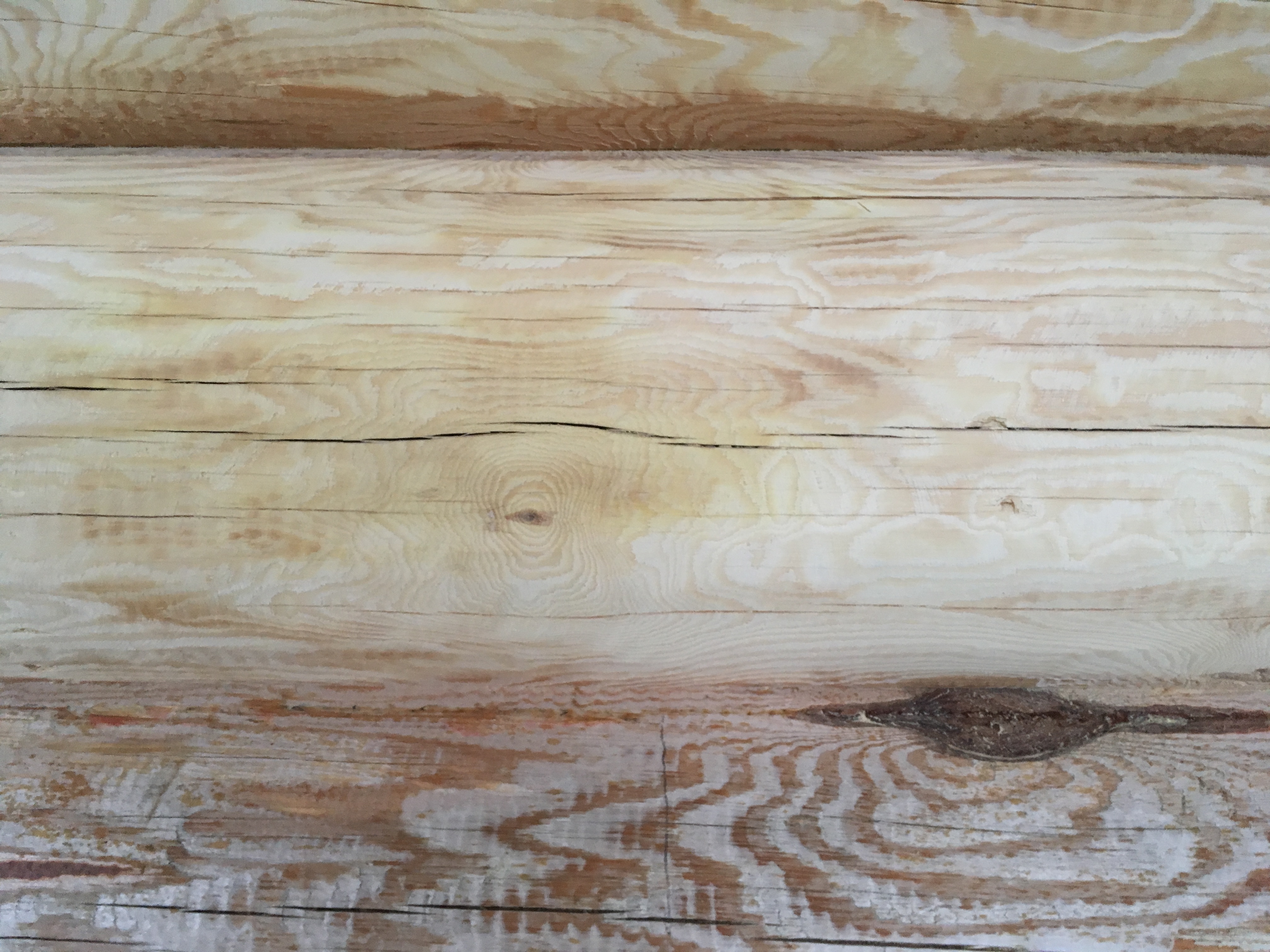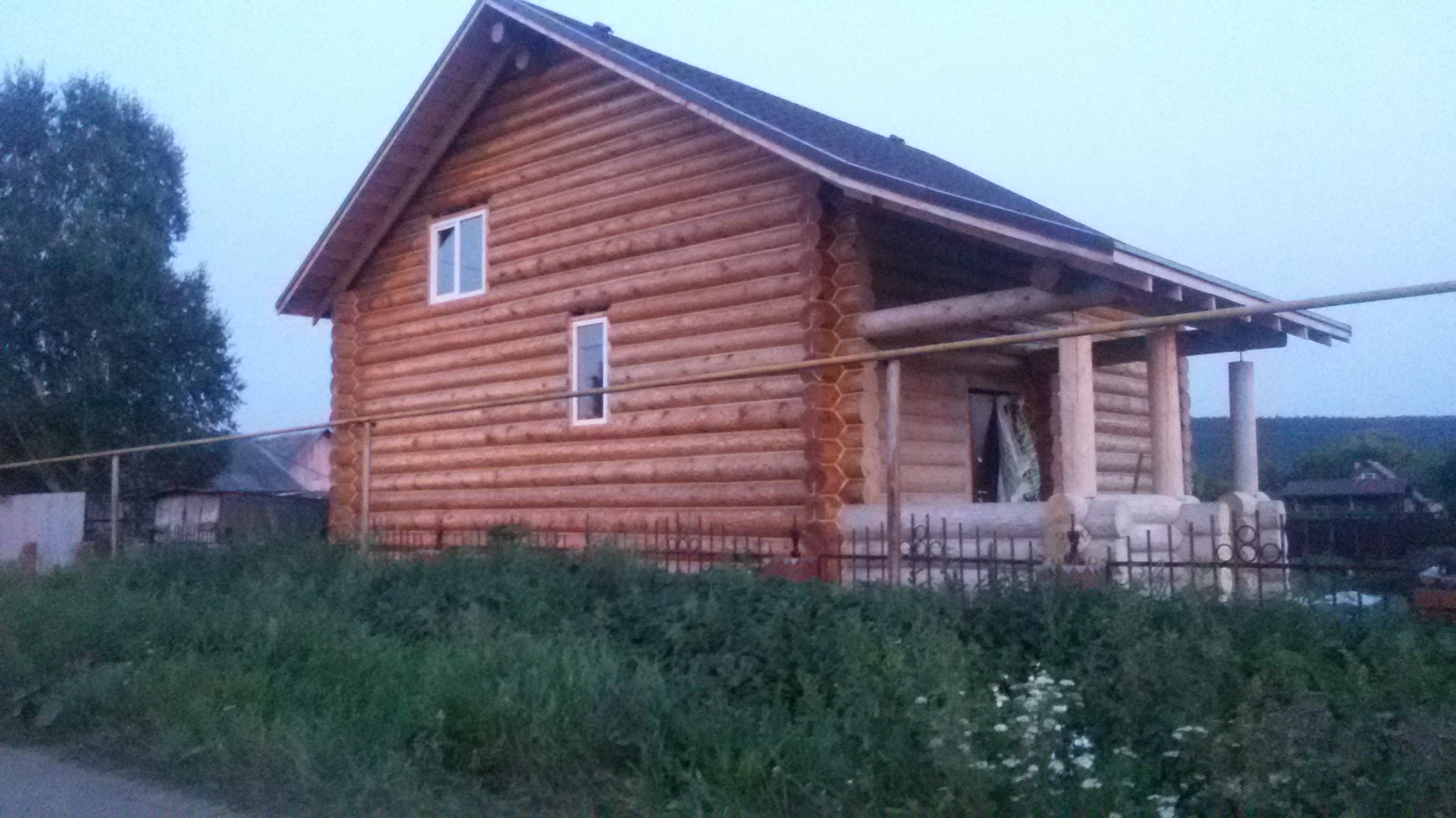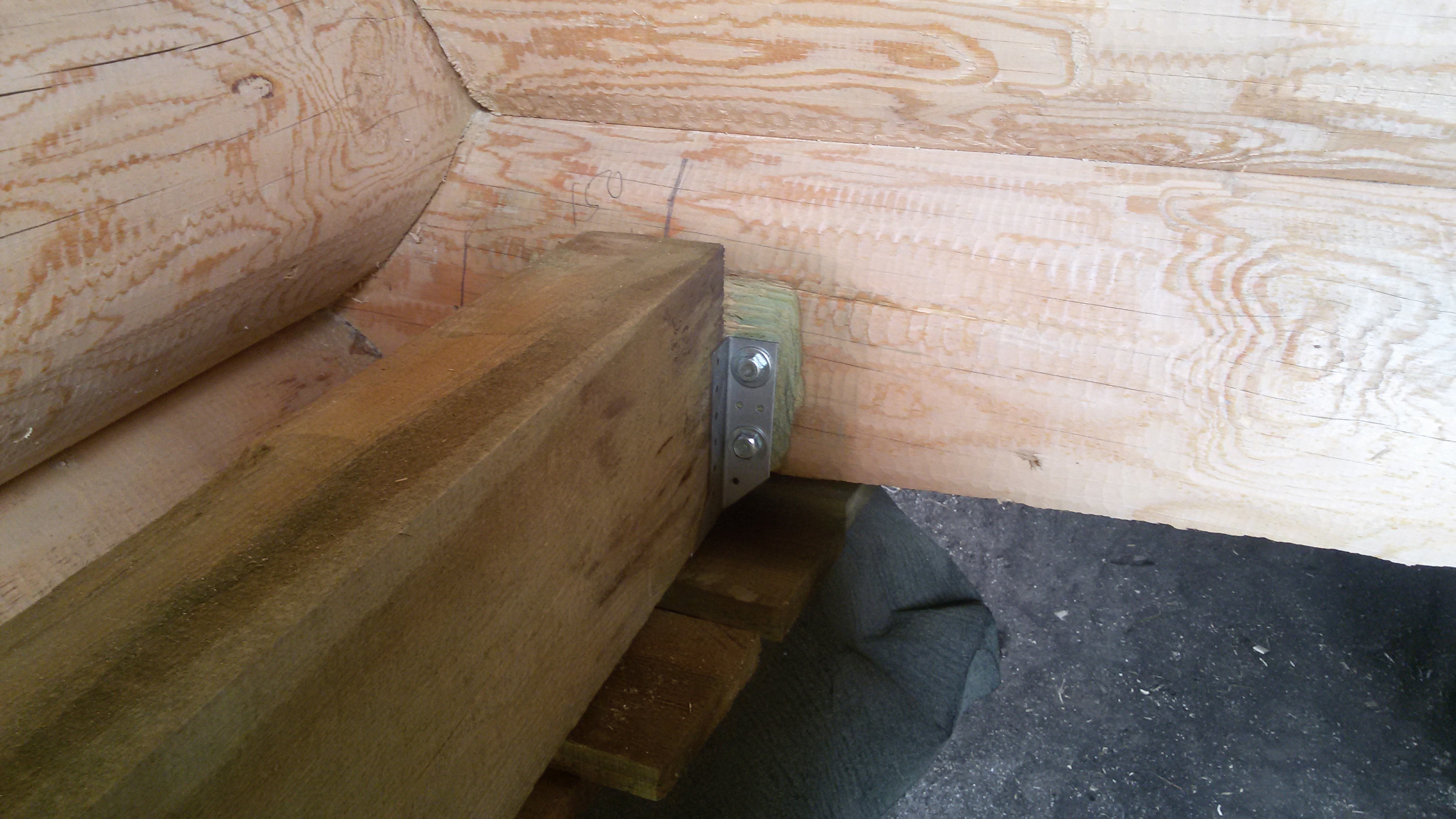 Внутри дома бревна шкурили. Самое начало.