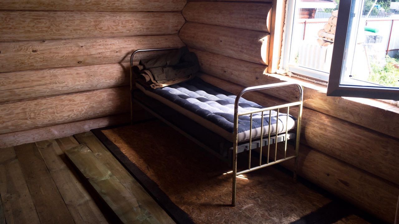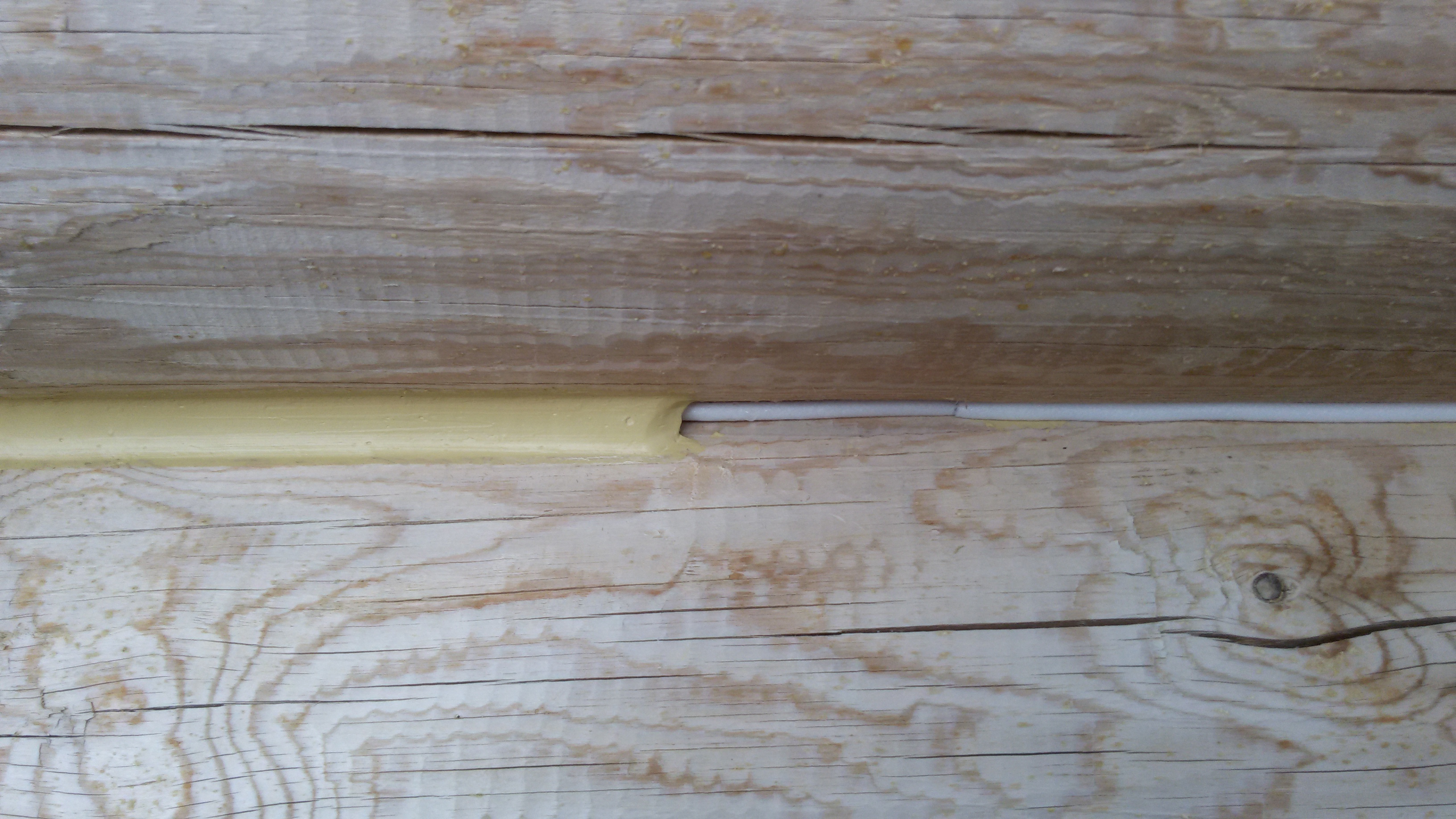 Снаружи зашкурили только торцы бревен. И покрыли весь сруб масловоском.