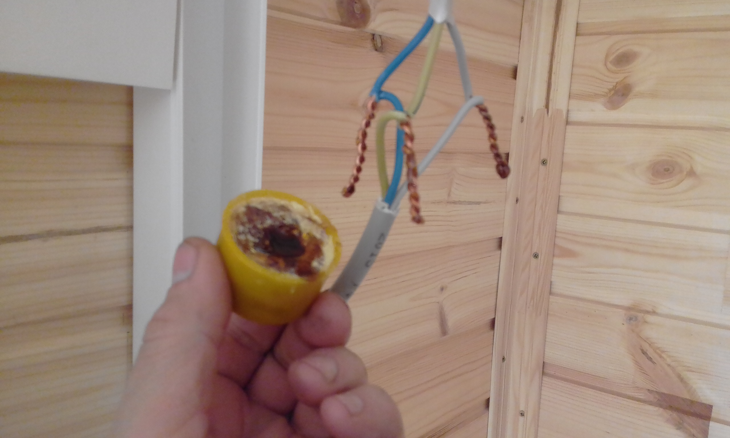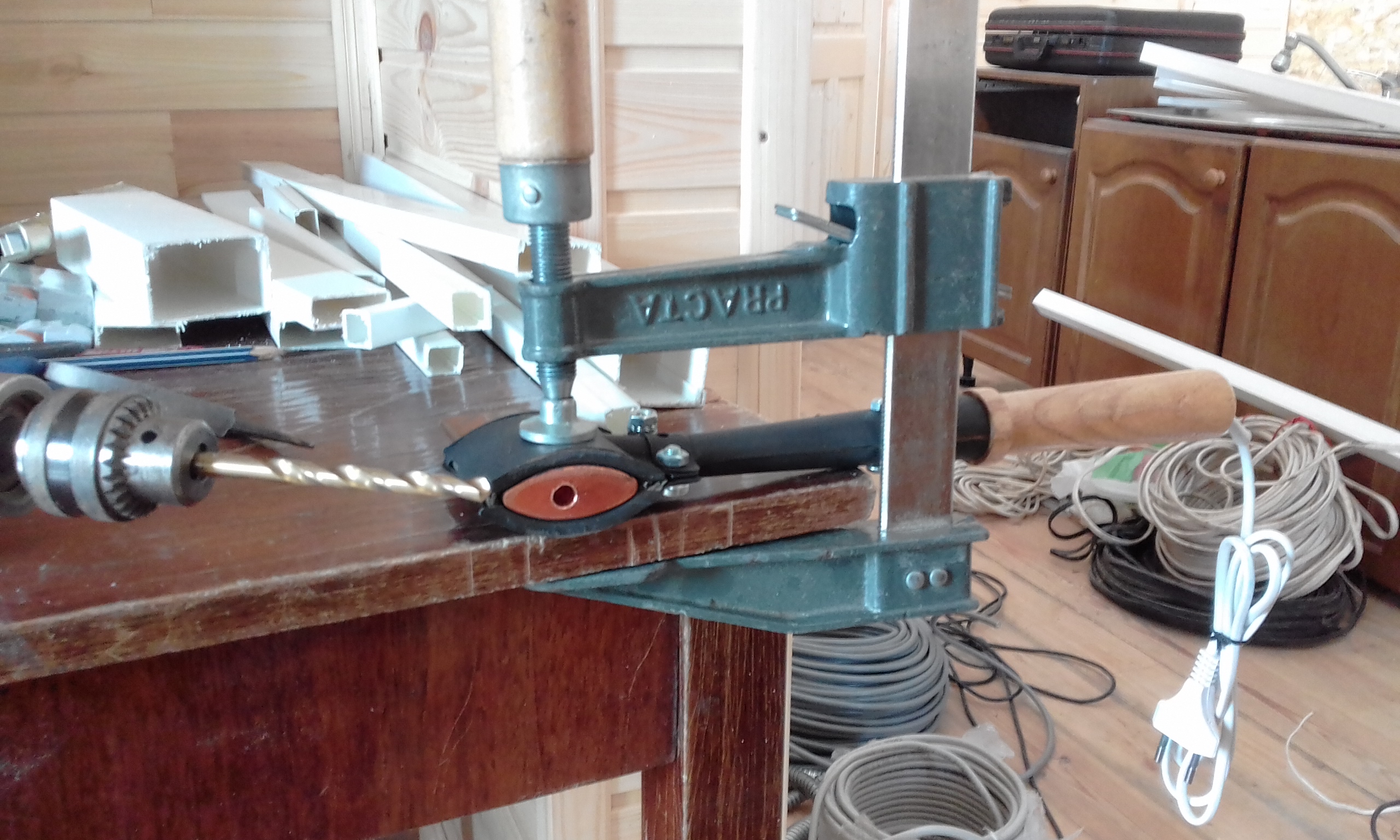 Продолжаю дерзать с элетро-монтажными работами. Плакатик- напоминалка, чтобы не лазил куда не надо. Сверлю отверстие-ванночку в паяльнике-топорике.