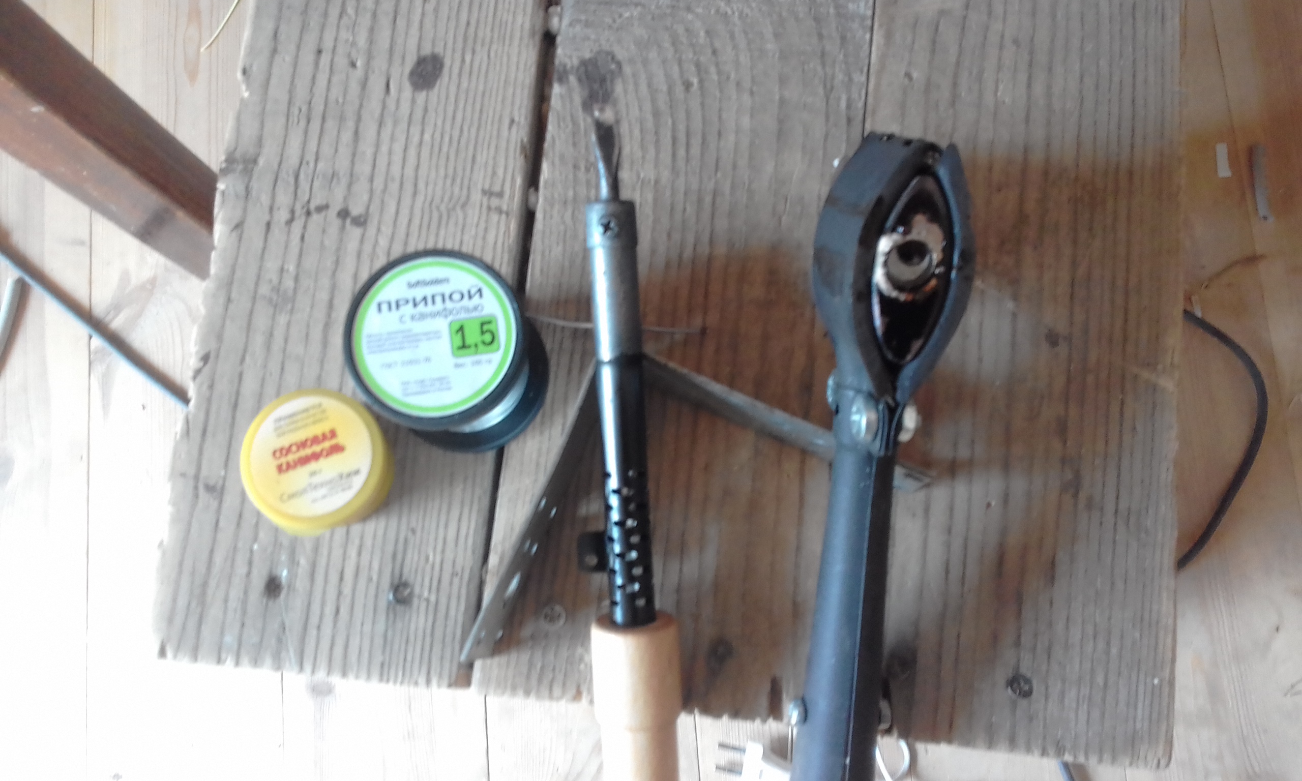 Они забраковали жидкий флюс для алюминия и всех металлов. Дима советует канифоль на спирту, но недосуг заехать на рынок или в магазин. А сосновую канифоль и припой с канифолью одобрили. По их чётким рекомендациям приступил к пайке скруток.