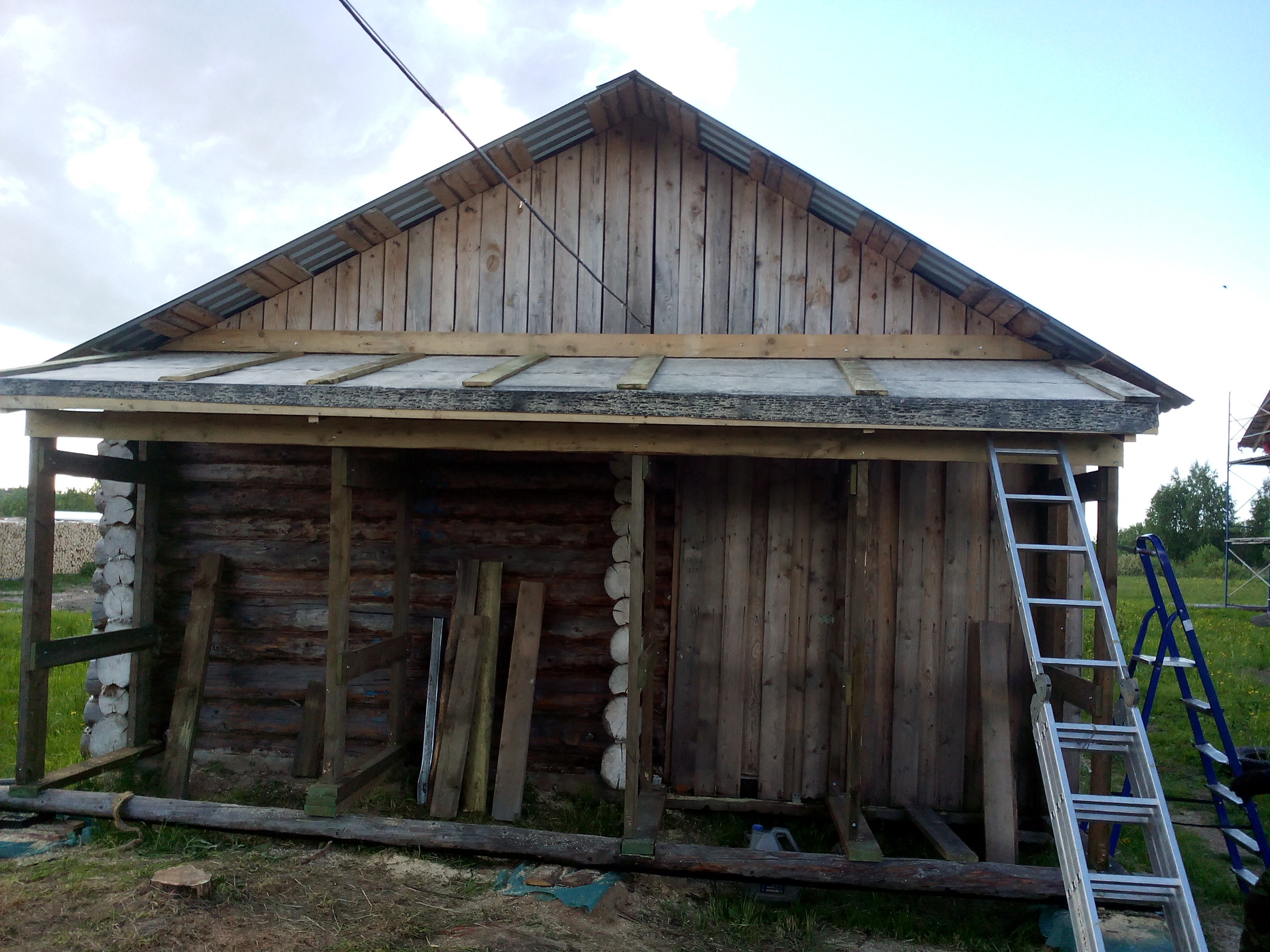 Ну, ретроспективно попишу еще по дровеннику: Когда приехал сын , то собрали рамы воедино:
