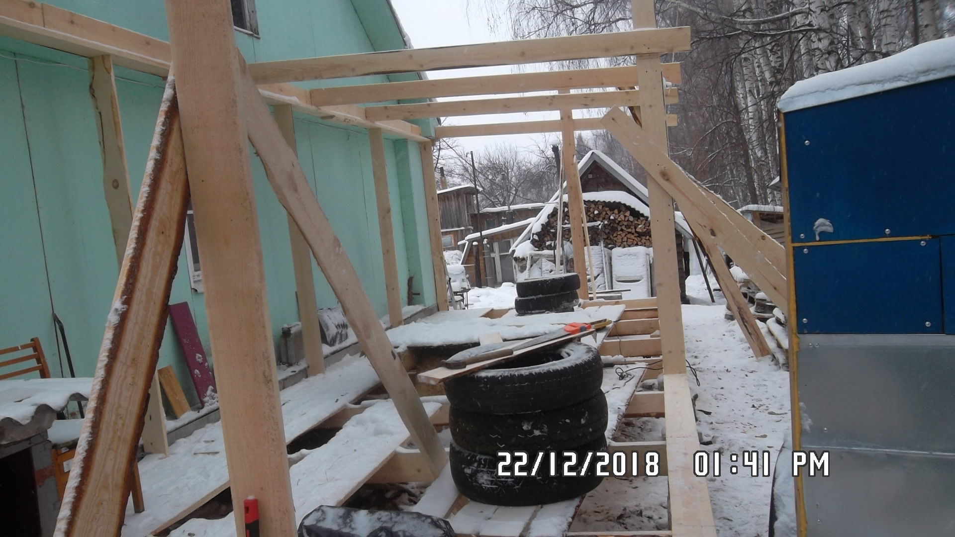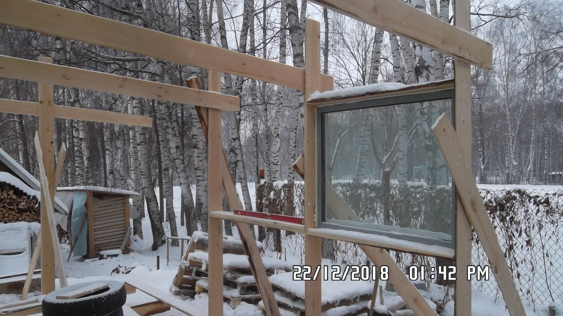 Как будет тепло, так пропеним все щели в стенах, оформим окна снаружи, покрасим пристрой. А как только грунт под пристроем высохнет, можно будет засыпать подпол . потолок и посмотрим, что мы будем делать со стенами..