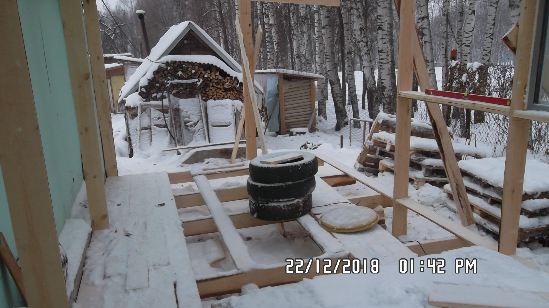 Никак не алё! Сейчас стоят на промерзшей почве, но кирпичные столбики на гидроизоляции- это раз, а два - у нас песок на 9 м.Грунтовых вод нет совсем, морозного пучения нет в принципе,подставить при нужде покрышки весной, как два пальца...посмотрим, будет ли в них нужда. Обе боковые стенки стоят на тротуаре, только передняя на грунте. -