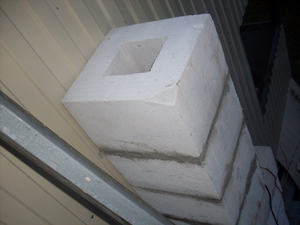 Из перегородочных блоков у меня дымоход в жилом доме. Два наружных клал заготовленными модулями. Это упрощает кладку и исключает вертикальные швы.