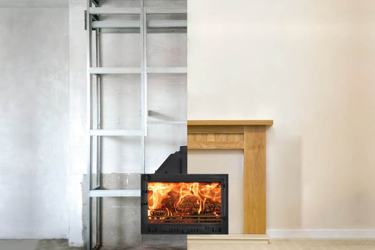 а если купить просто каминную топку , труба есть , можно присобачить маленький щиток и для быстрого разогрева провести воздушное отопление .