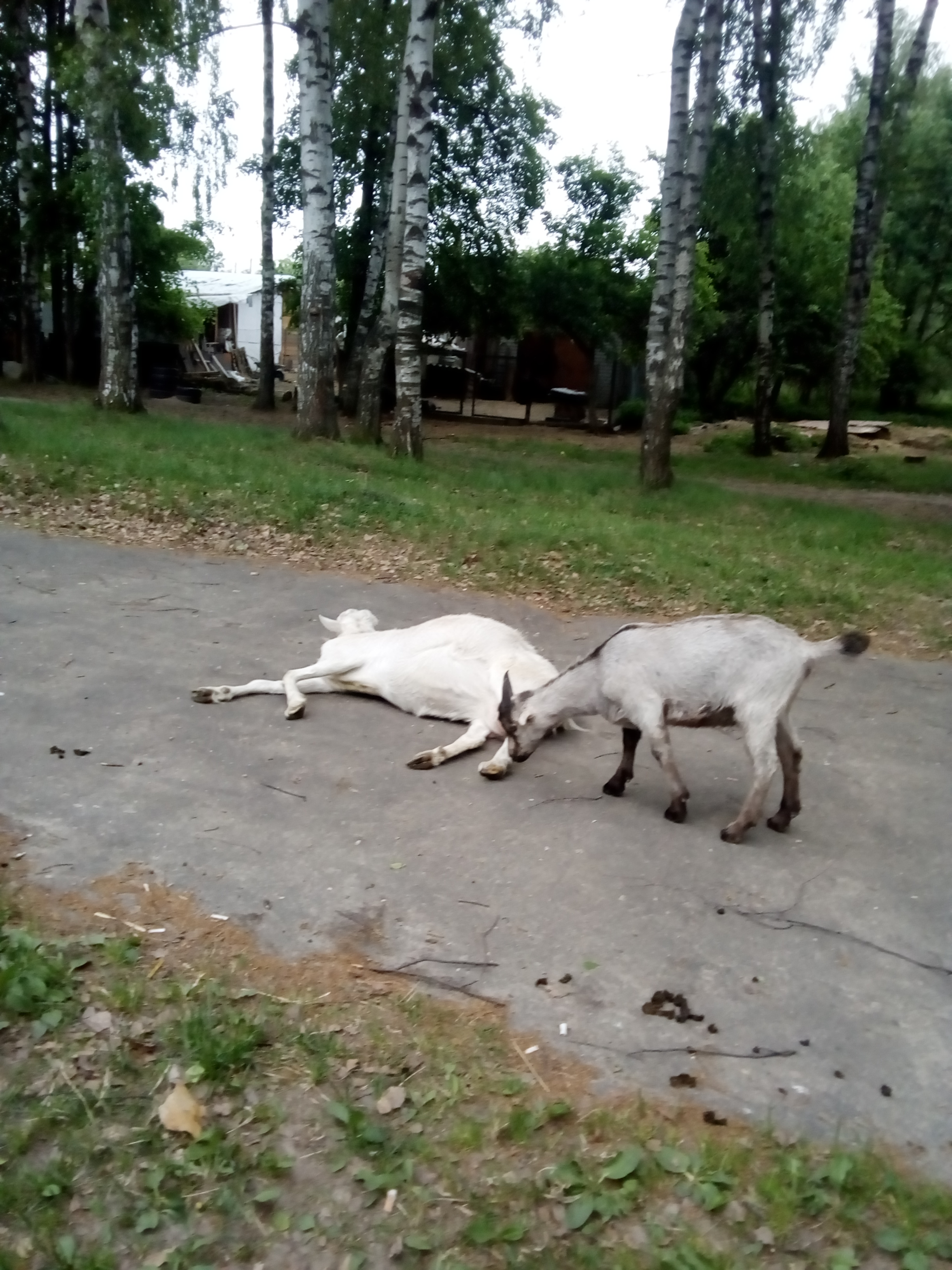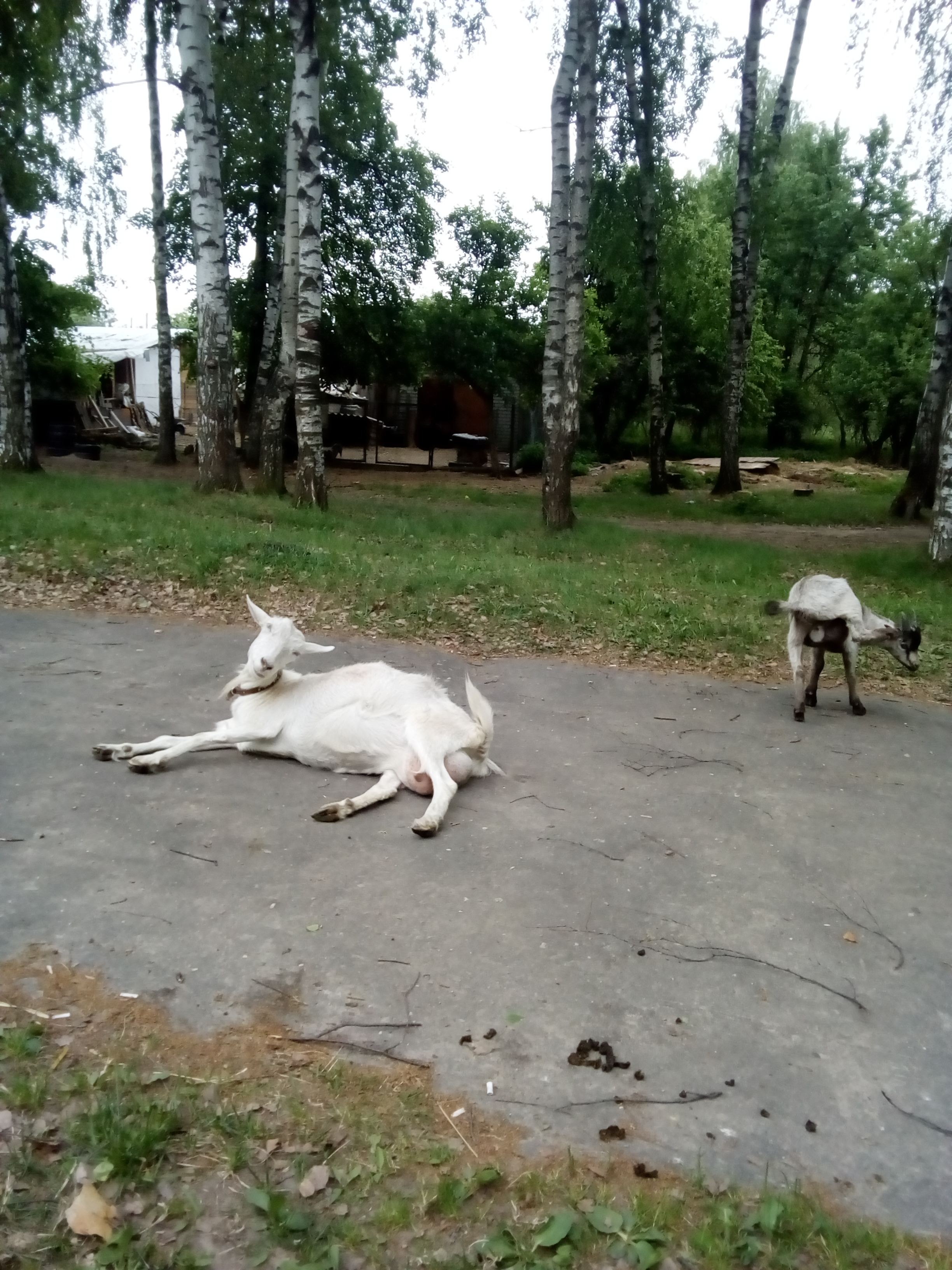 Пасти одновременно кобылу и коз очень неудобно - кобыла рвется в микрорайон, где между домами на газонах уже полно травы, а коз туда нельзя. Им место в роще. Но я приспособилась. После дойки увожу лошадь в микрорайон, а муж приоткрывает ворота . Козы уходят в рощу. но одни никуда не уходят. а пасутся не дальше. 100м от дома.За два дня приходила проверять их - они либо пасутся недалеко от ворот, либо валяются во дворе со жвачкой. Сразу прибавили в молоке.. Козы стали спокойней. Теперь и лошадь наедается.