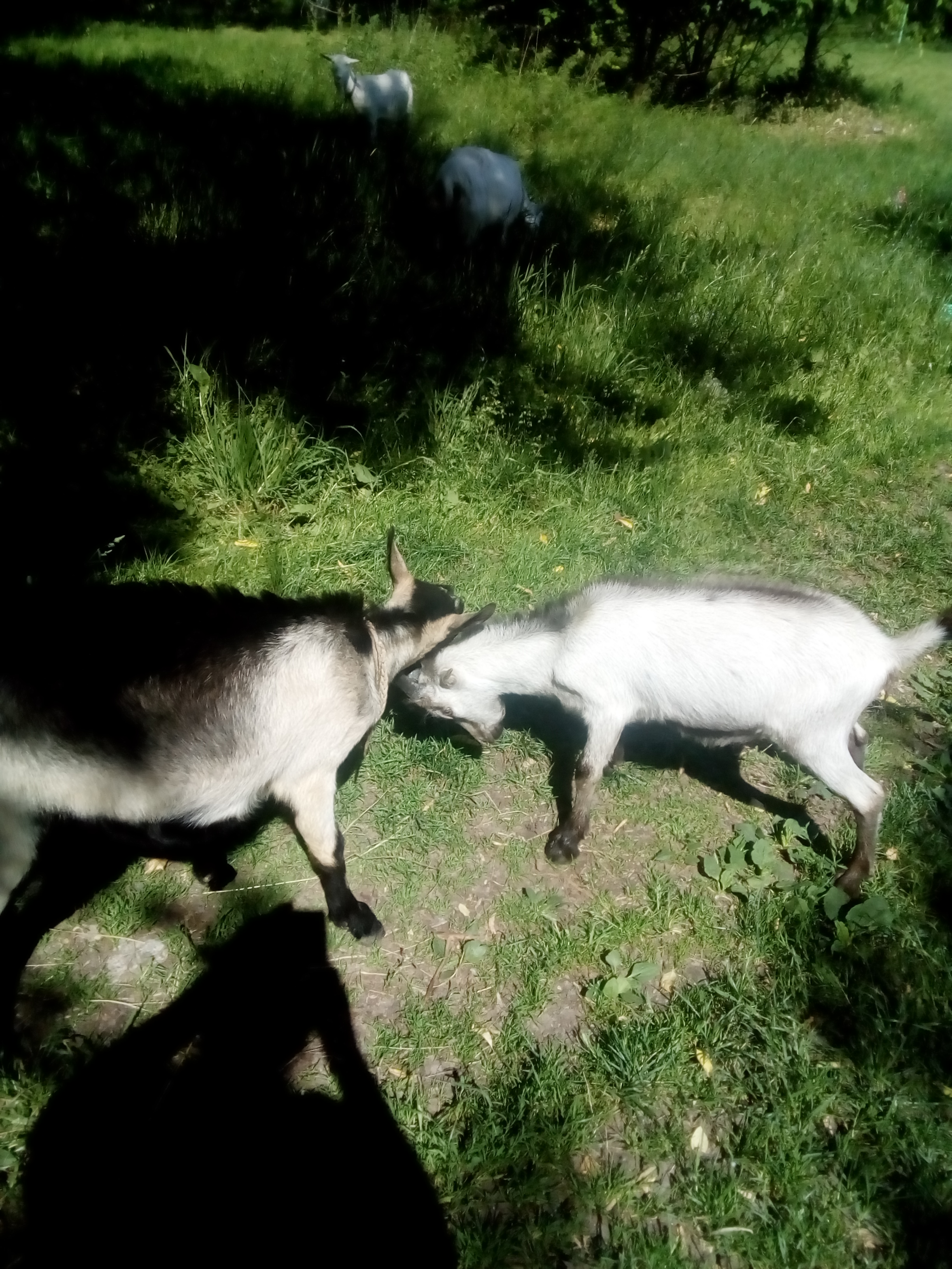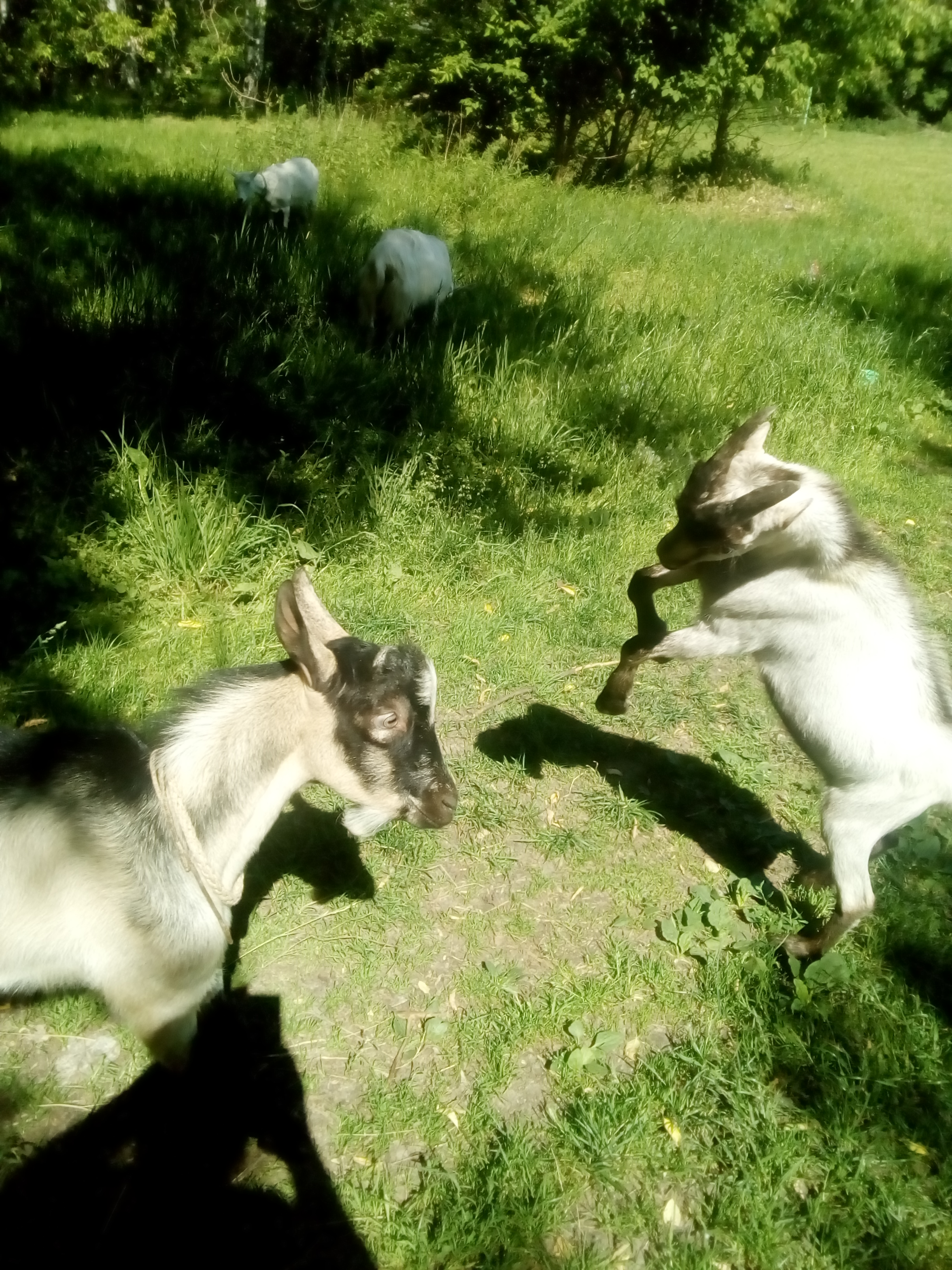 Сегодня обменяла своего альпийского козла на другого альпийского козла, возраст примерно одинаковый, но мой козлище замучил свою мать, которую уже перерос, но все ее доил изо всей силы. Я ее утром доила, а он весь день. Ложился под нее и так поддавал под вымя, что козушку аж подбрасывало! И никак, гад, не прекращал это безобразие.Теперь все молоко мое!