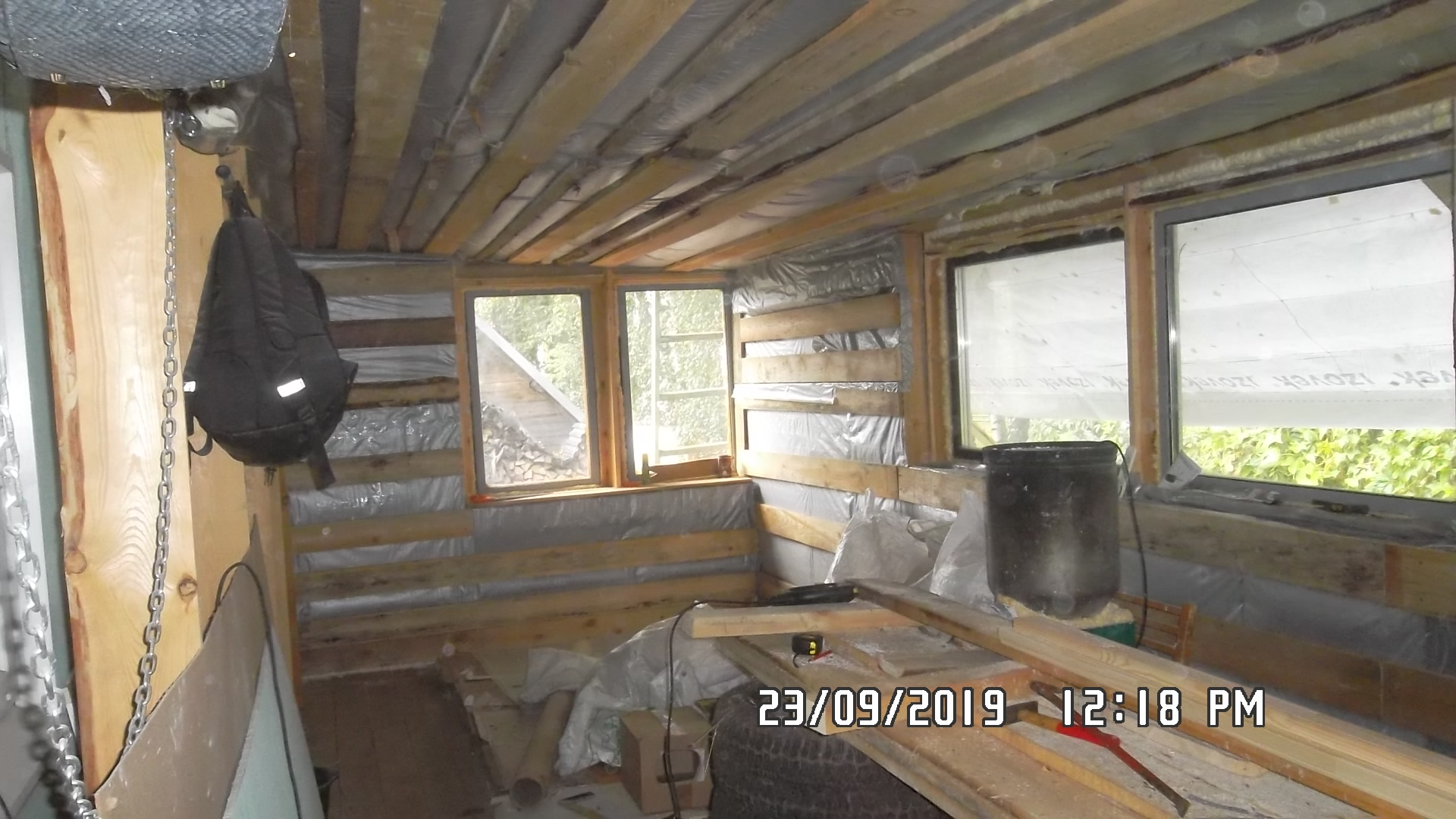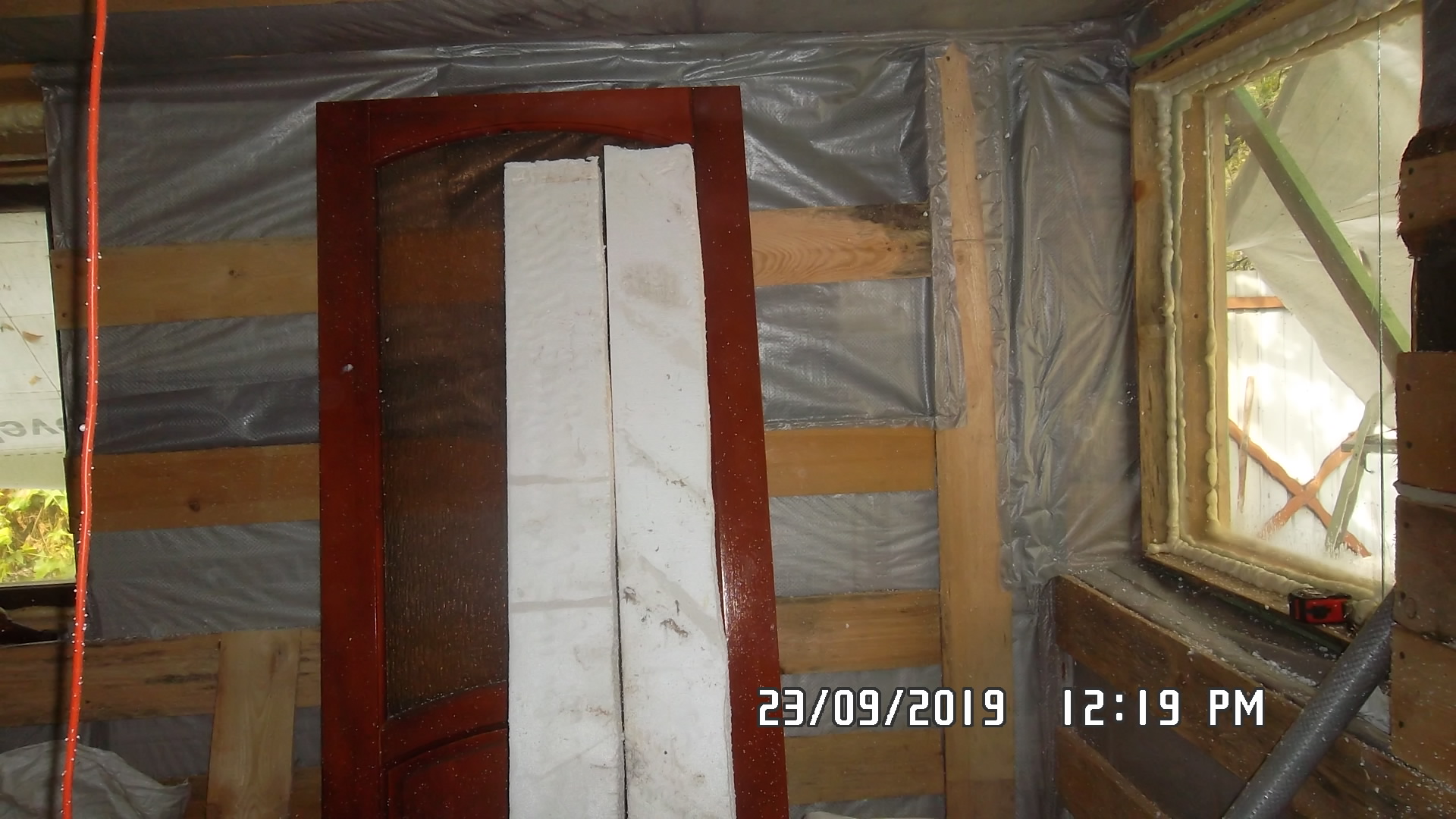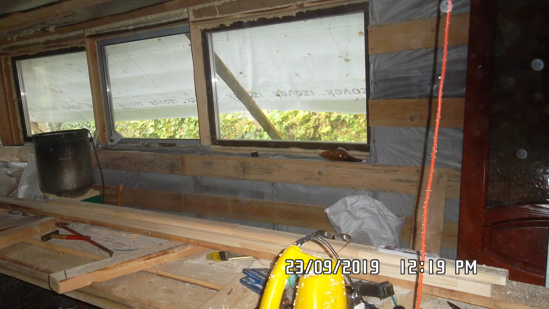 вот это окно у нас самодельное, временное. Решили пока не вынимать окно из стены дома, Посмотреть , как будет зимой.Если будет все нормально, то весной сделаем еще один дверной проем.