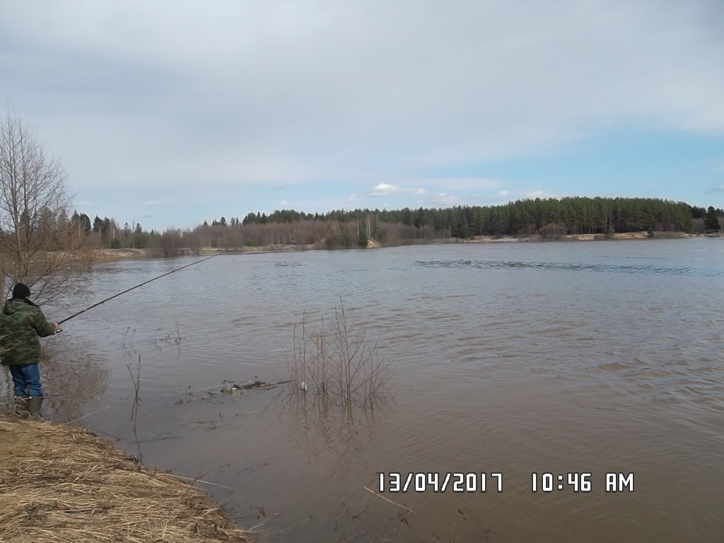 Река Узола, в четырех км от города. Разлив. Летом ее можно в некоторых местах перейти пешком. Мы пытались ловить рыбу. Поймали пару уклеек с палец и выпустили их обратно в реку. :acute: