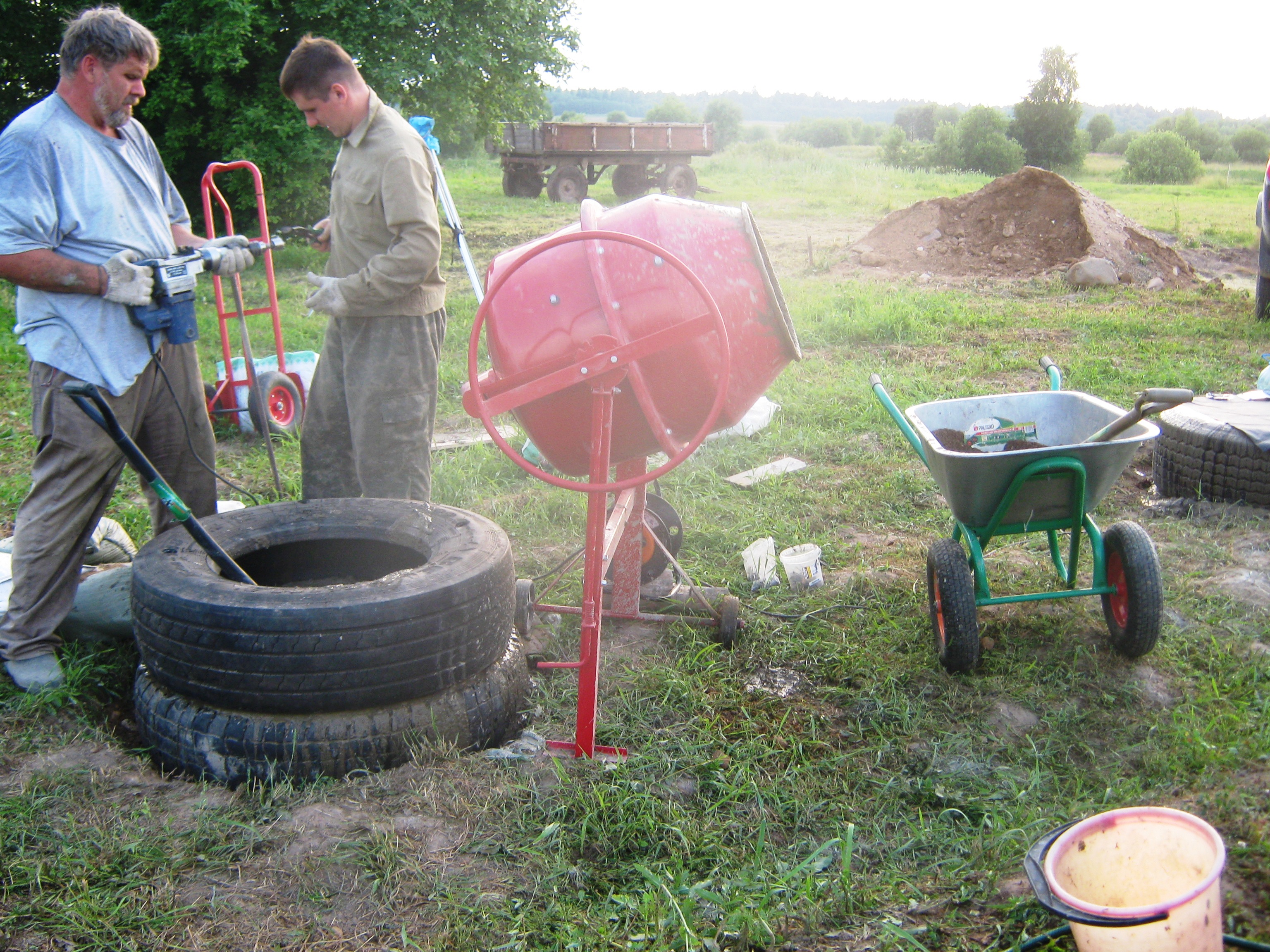 И кстати о фундаменте: привез грузовых покрышек.