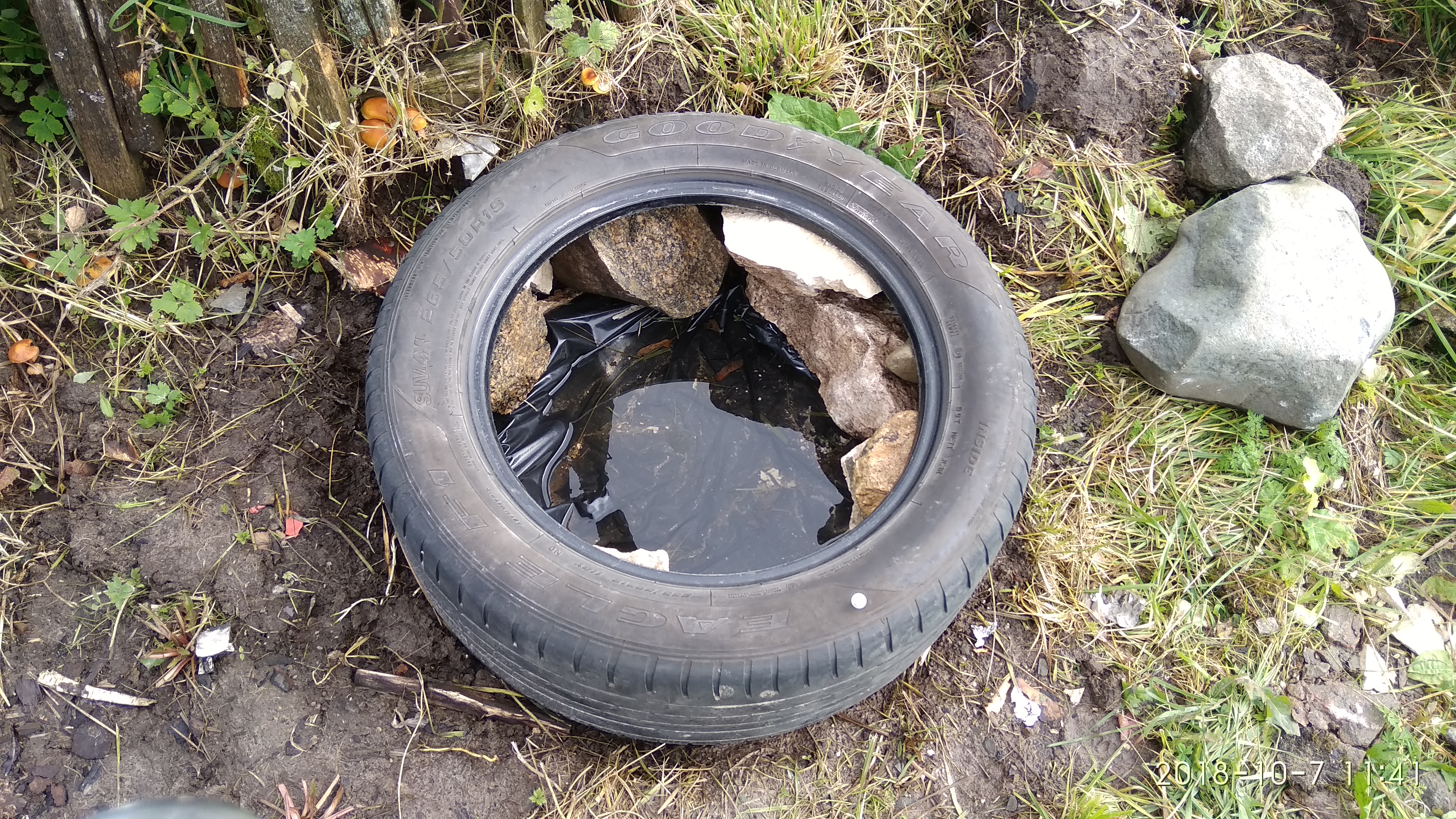 Покрышек джипьих с осени навез, кирпичей и камней с печки разобранной набил, арматуры по метру в виде анкера Бог дал