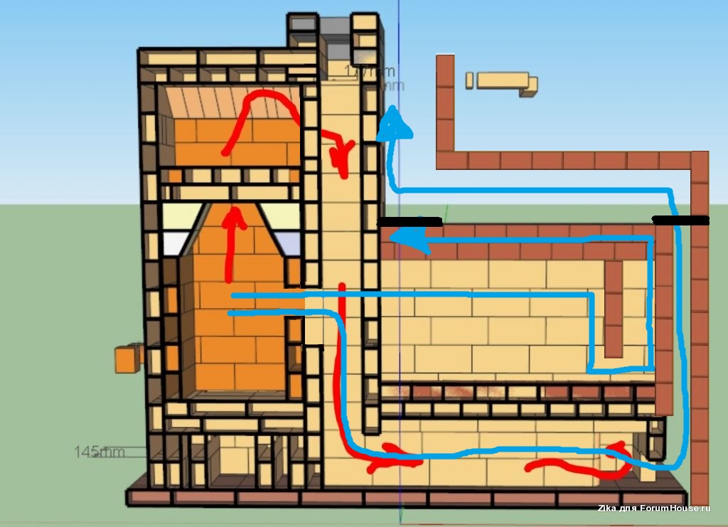 Если с моей, сейчас бы я тоже меньше потратила. Верхний колпак весь бы и трубу сделала на ребро. или из самого дешевого кирпича. Там всего 20 % тепла.