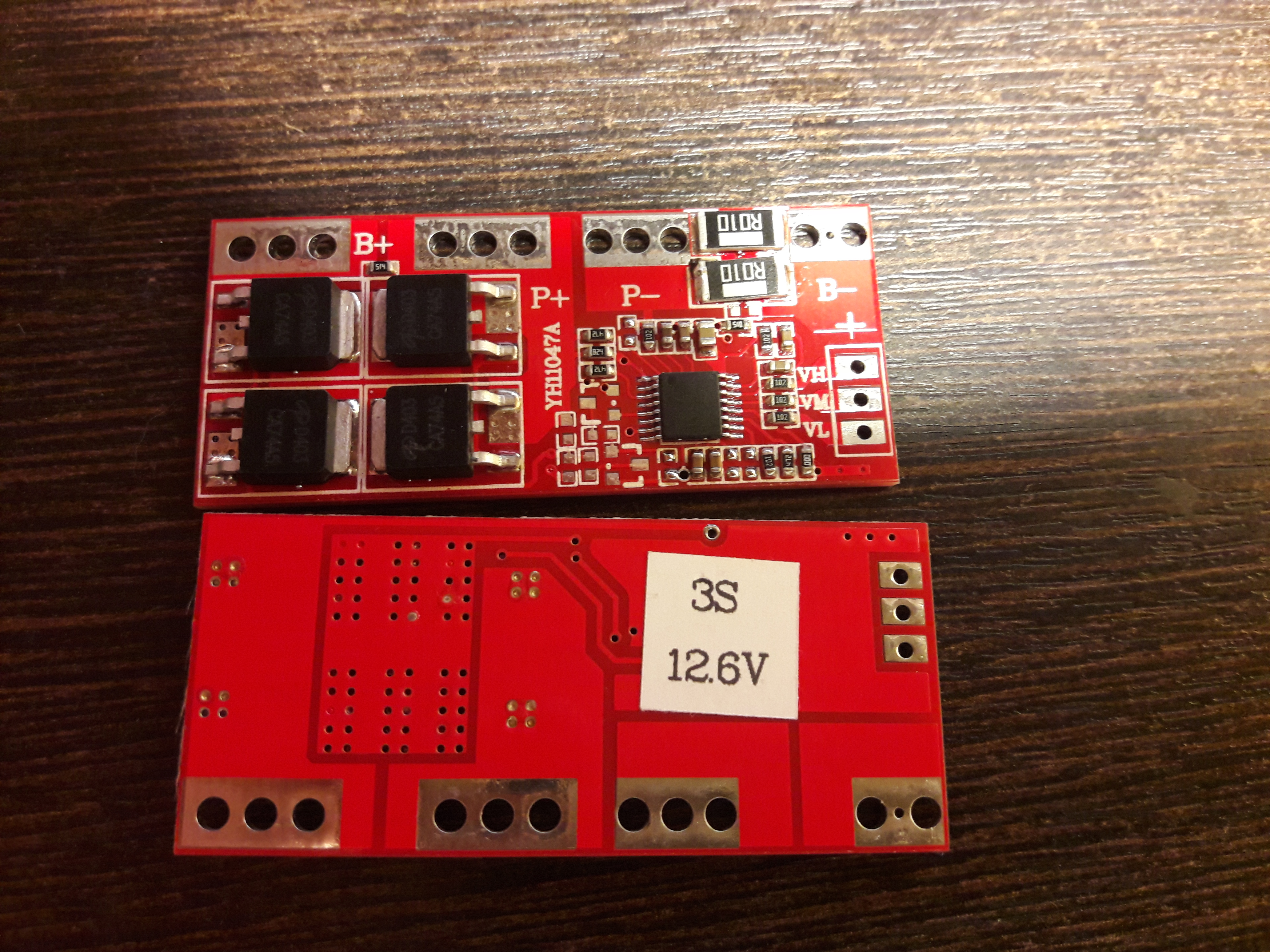 А, бмс-ка пришла на 3 банки, падлы китайцы... А сам контролер расчитан на работу максимум 4х банок. Вобщем разобравшись с даташитом перепаял и пересобрал схему на 4 аккумулятора. Там два резистора СМД перепаять надо. Разговоров больше.